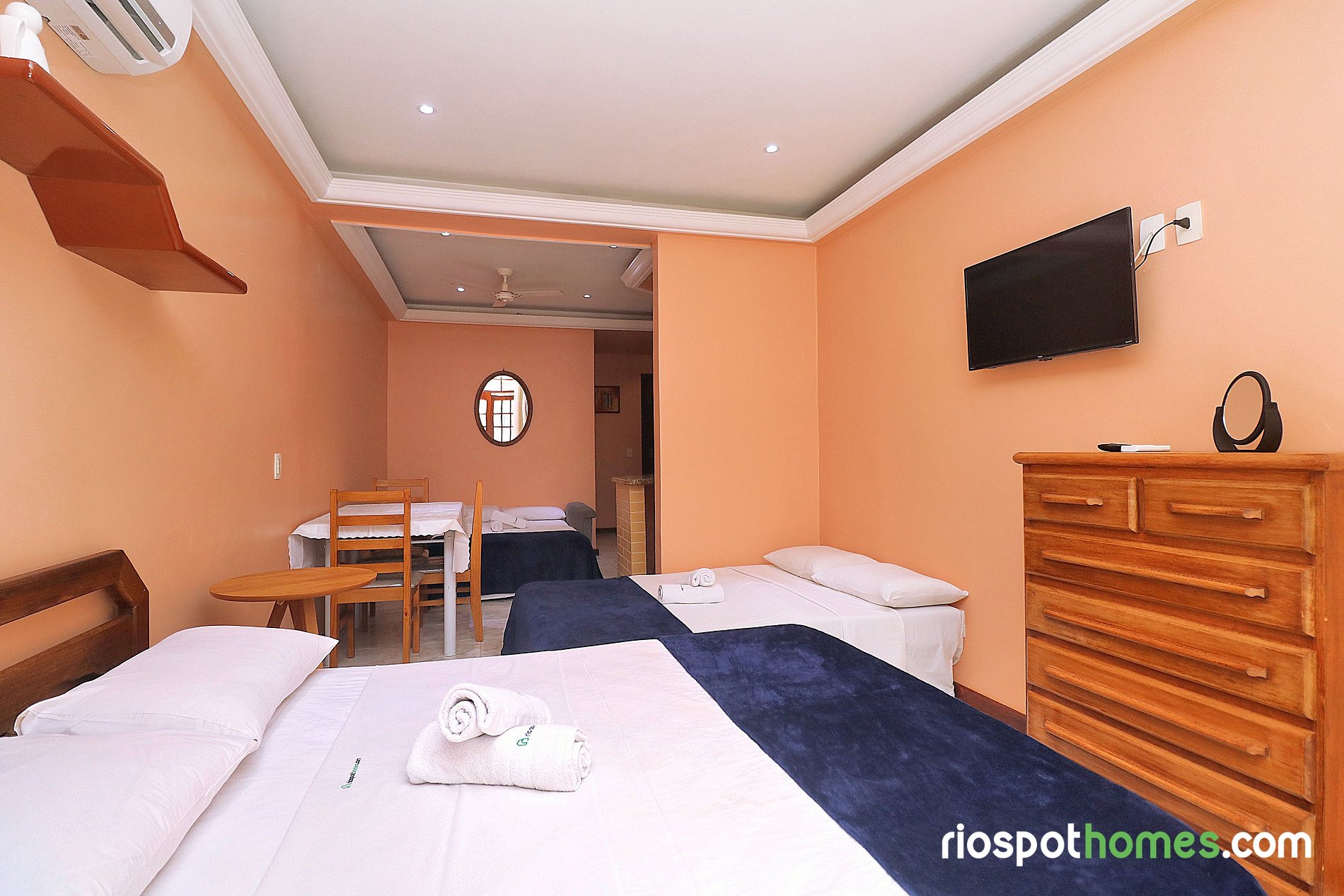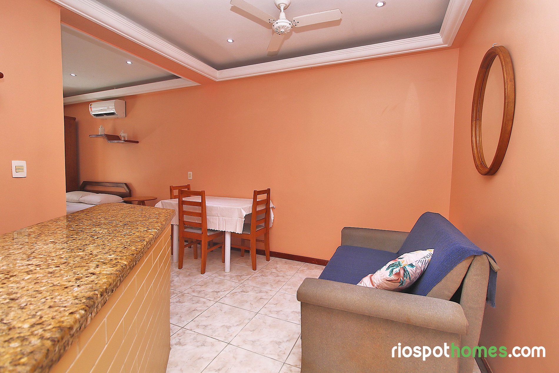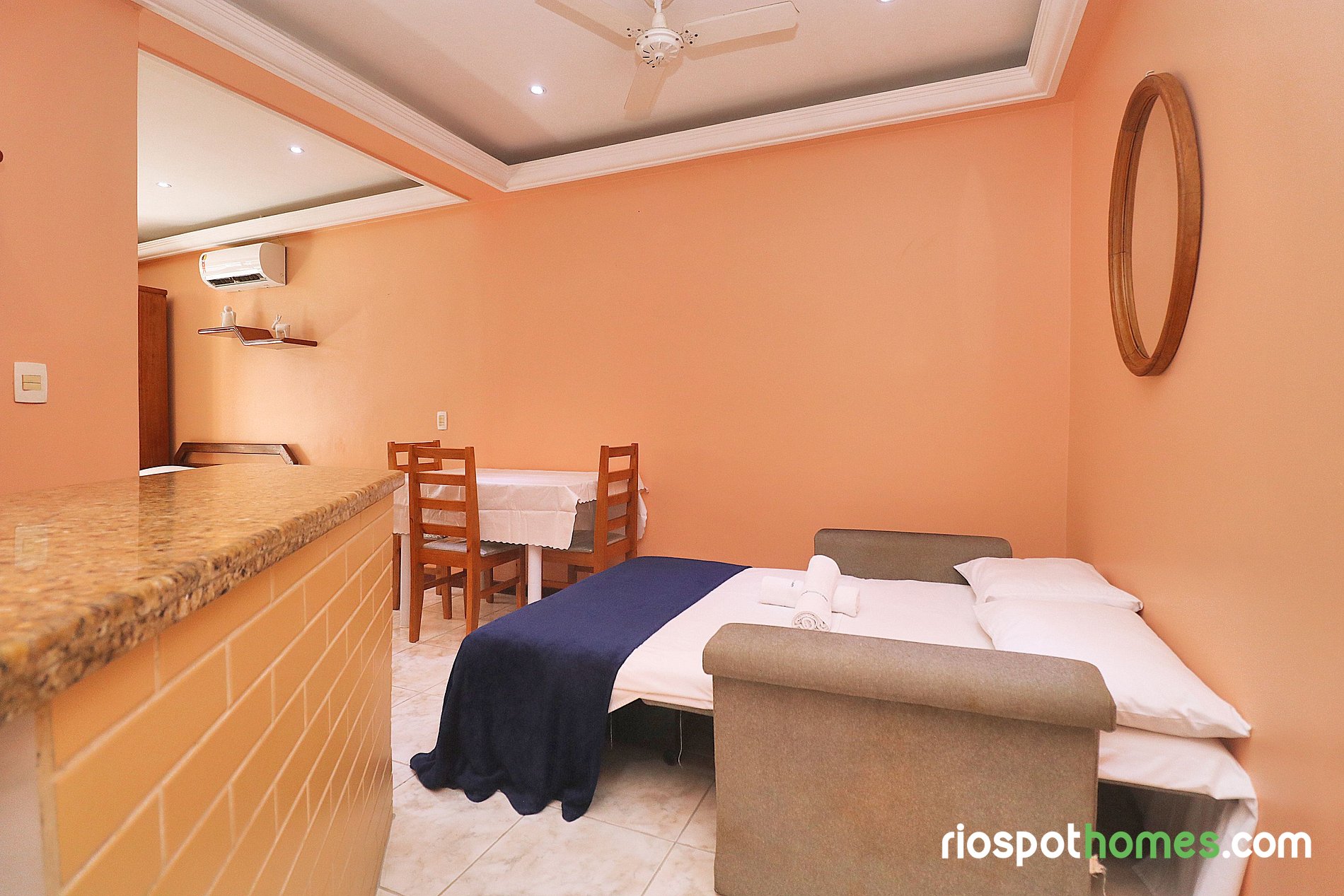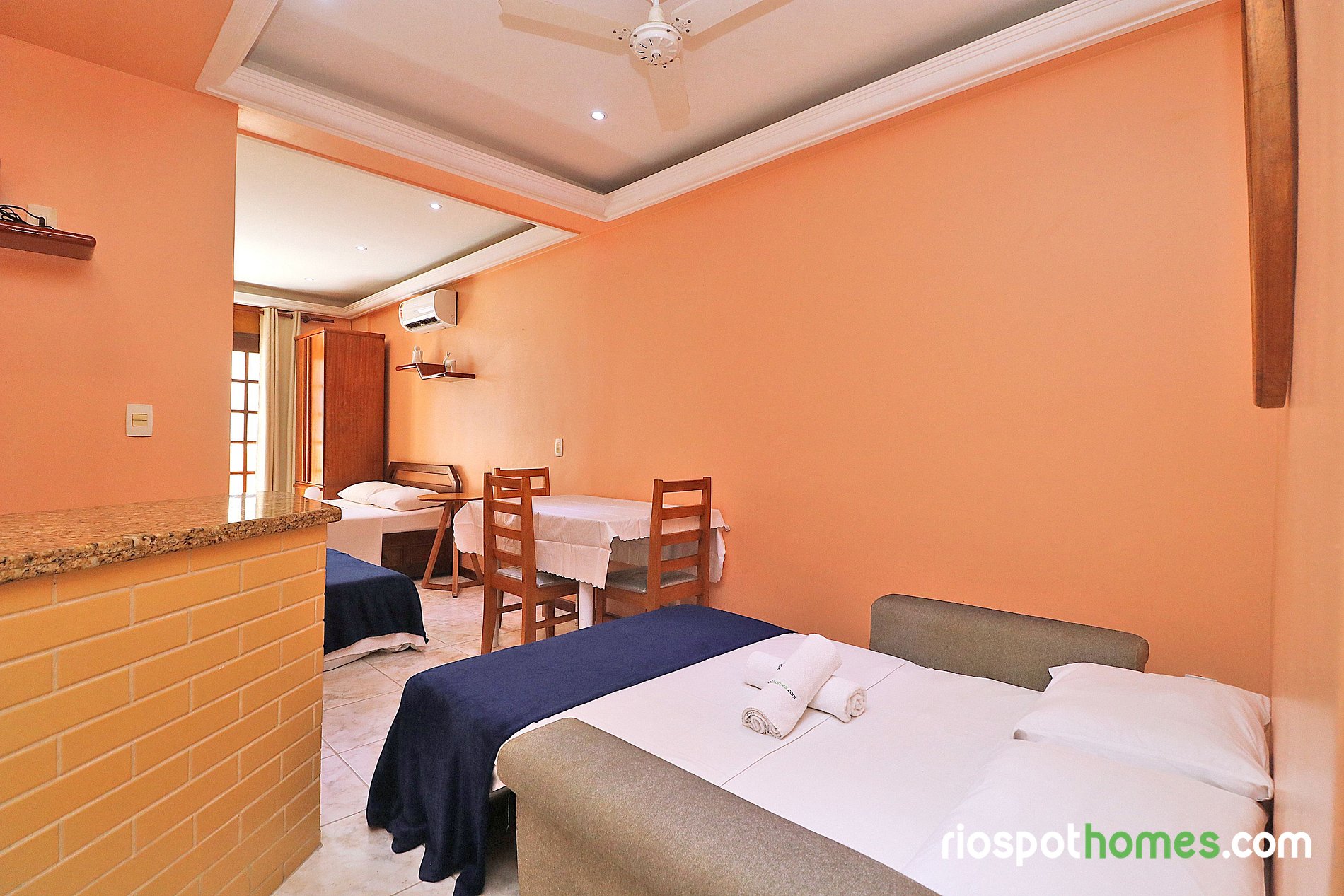 Lugar como en las fotos , está ubicado en una zona tranquila y muy cerca a todo , restaurantes , bares , farmacias, centro comercial y a 2 cuadras de la playa de Copacabana. El lugar cuenta con todas las comodidades y con aire acondicionado.