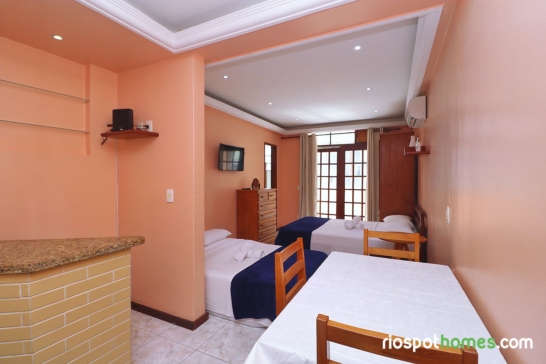 Postivies: Great Location (see negatives also) and access to everything. Great communication. I even lost the keys and they responded on time and importantly, can speak English. Apt has Washer, Drying stand, Water (not drinking water) is ample, shower is really forceful and enjoyable, Hot water, AC (could have been bit better but good), 24 hours security and gated. Very importantly we are Vegetarian and the Apt has 2 Gas stoves. It was very useful to have cooked and homely food at times.Grocery stores, Currency Exchange are very near. Uber, Taxi, Tour Pickups are available. if you stay deeper in Copacana, you will be stuck in Traffic. This is place on the road that leads to Rio downtown, not stuck in Traffic. Negatives: Location, Apt is on the main road that leads into Copacabana from the city. Always traffic and noise even late night. very very active location. Apt is not Classy and worn out. Not like Ipanema or Leblon which are upscale including People around the area. I see people sleeping, peeing on the streets from the Balcony and lot of trash. If you like very active location, blend with the real culture, this is the place. If you like to be Classy, upscale, dressing up for photo shoots not for you. Regarding Room size, I guess should be similar to a Hotel room. we are 4 people and 4 big luggages. 4 people can sleep, but cramped. Again, I guess even hotel rooms will be very similar and no complains on the size. Do not rent a car. Parking is costly.