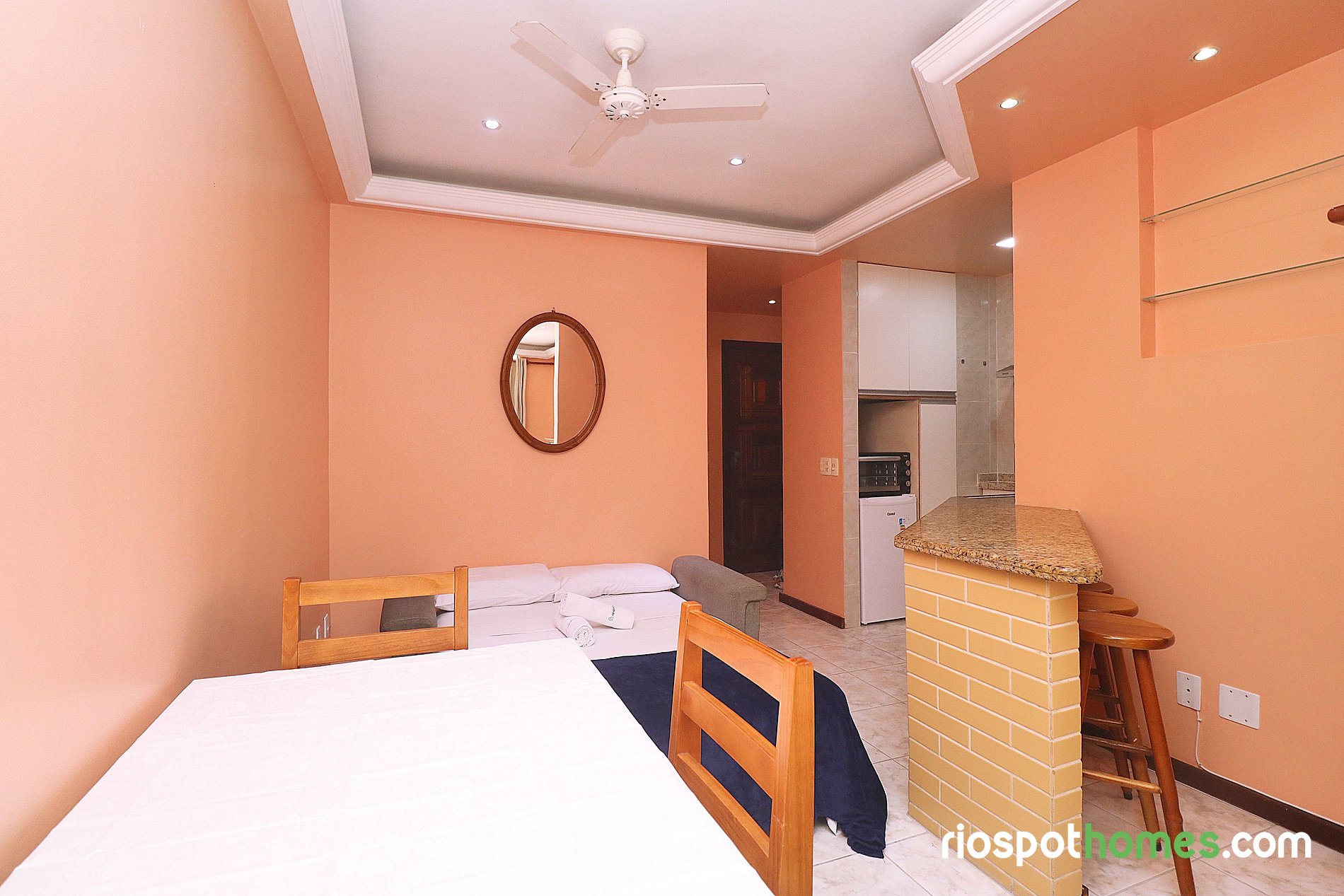 Lugar como en las fotos , está ubicado en una zona tranquila y muy cerca a todo , restaurantes , bares , farmacias, centro comercial y a 2 cuadras de la playa de Copacabana. El lugar cuenta con todas las comodidades y con aire acondicionado.