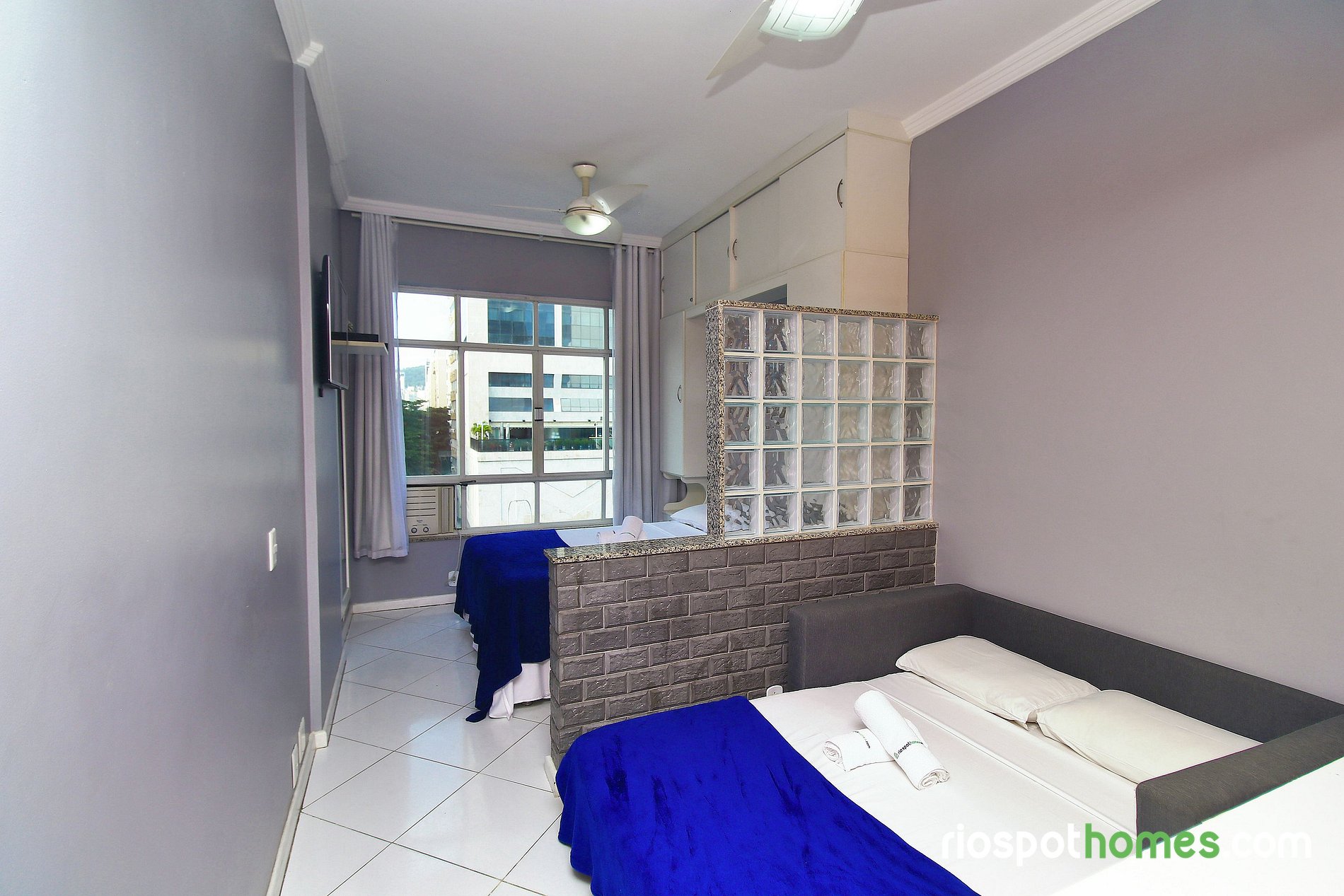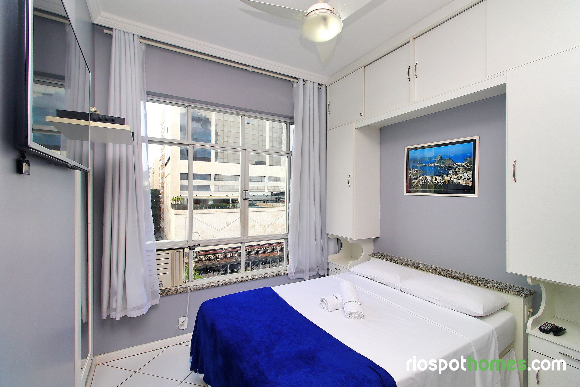 Modern apartment with beautiful views of Copacabana beach for up to 4 people in Copacabana. This incredible apartment is located on the first block of Copacabana beach with a wonderfull view to the most famous beach in the world. This propertie includes a comfortable double bed, 1 double sofa bed, air conditioning, 1 ceiling fan, 1 bathroom, full kitchen with all the electros and utensils, cable TV and Wi- fi. Close to bars, restaurants, banks, pharmacies 24hrs and public transport, this is an ideal place for small families, couples or group of friends. Book your lodging in Rio!