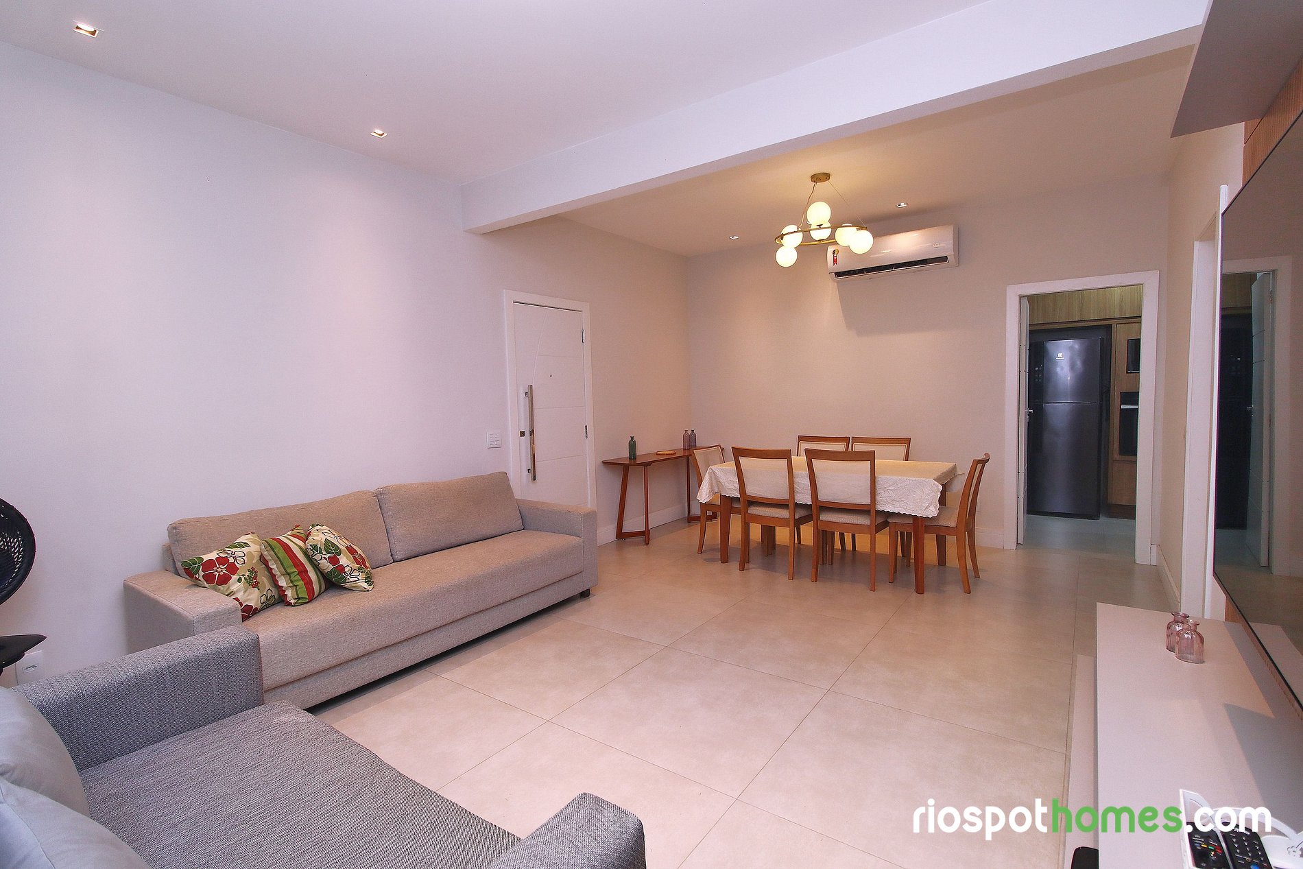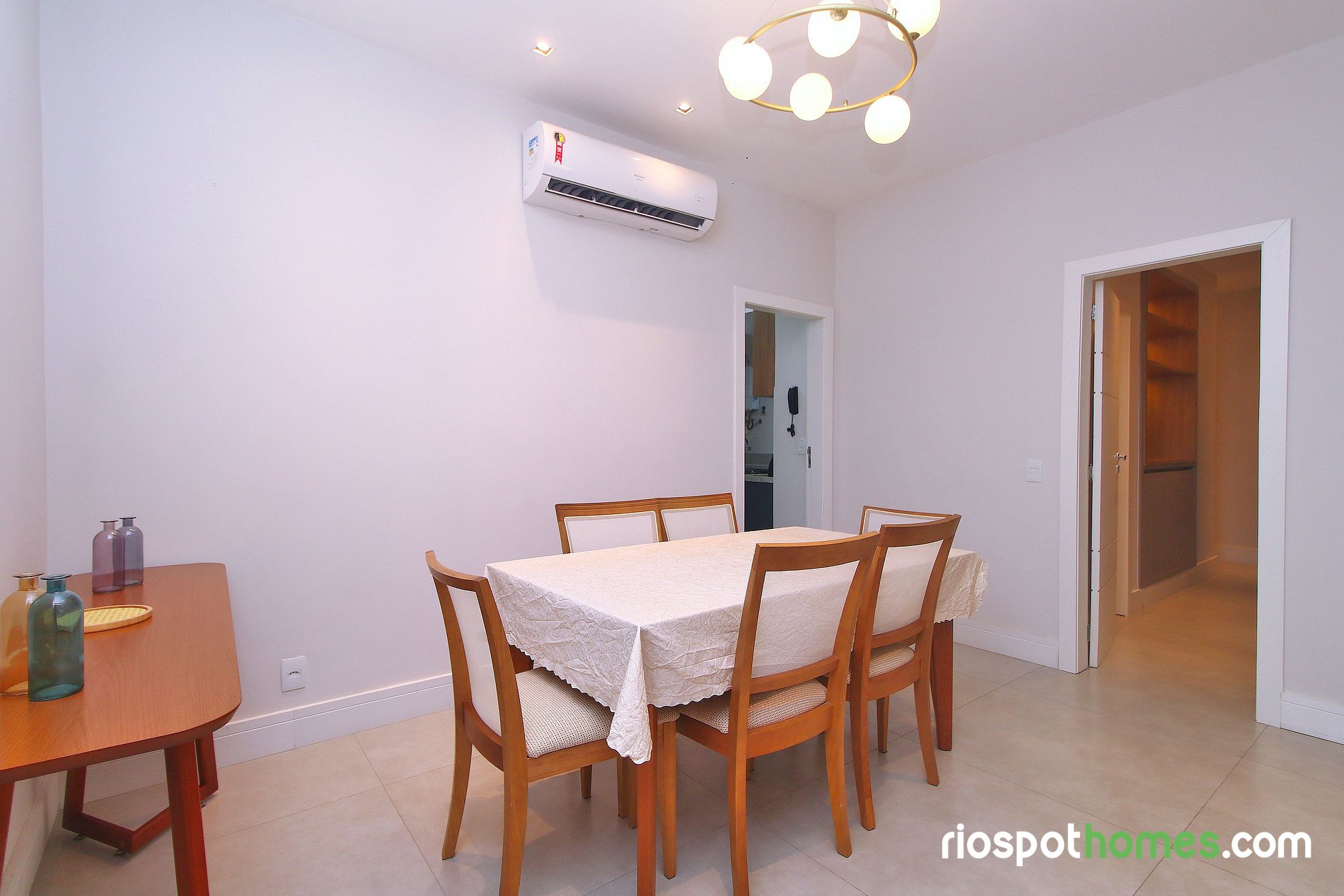 Modern and quiet 3-bedroom apartment for up to 8 people, half a block from the beach at Posto 4 in Copacabana. Safe family building with security cameras. Ideal for couples and large groups. Close to banks, pharmacies, supermarkets, bars, restaurants and shops in general.