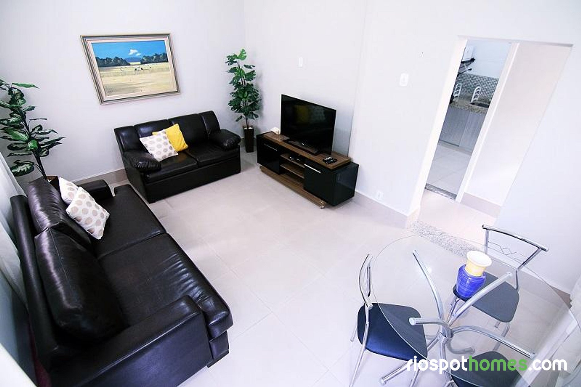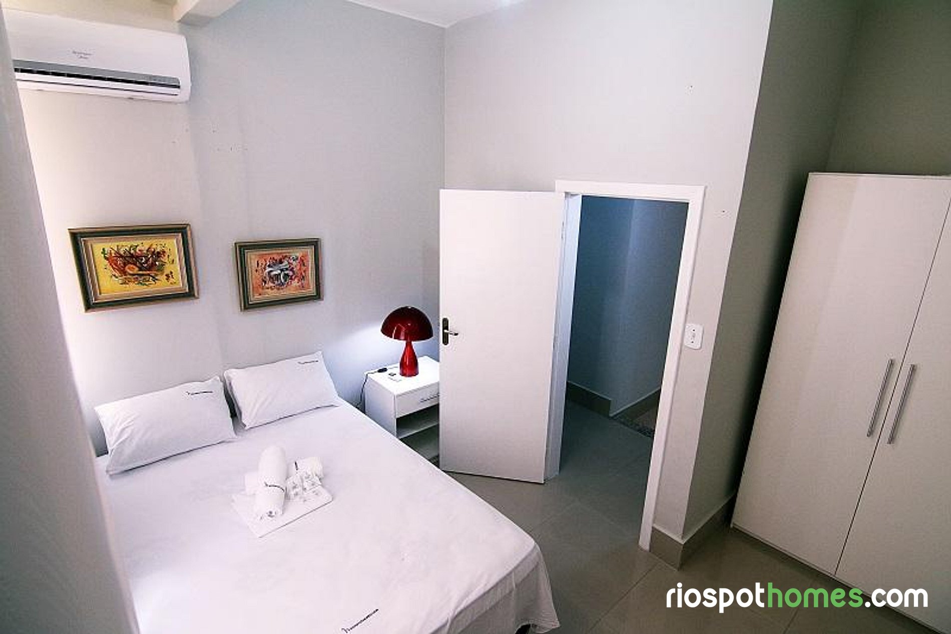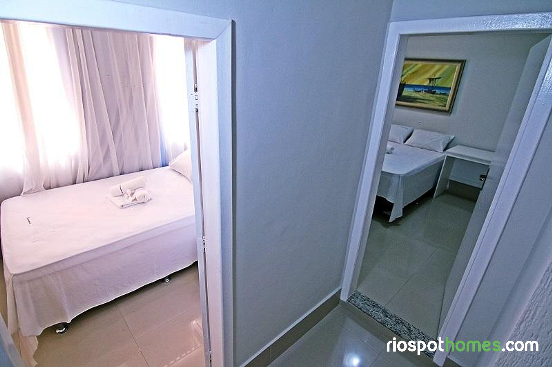 Apartment in Copacabana with 90M², divided into 2 bedrooms, living room, dining table, 1 bathroom, 1 toilet and kitchen with washing machine. The first bedroom has a double bed, closet and air conditioning. The second bedroom is equipped with 1 double bed and air conditioning. The living room offers a sofa bed, double bed, LCD TV, fan and dining table.