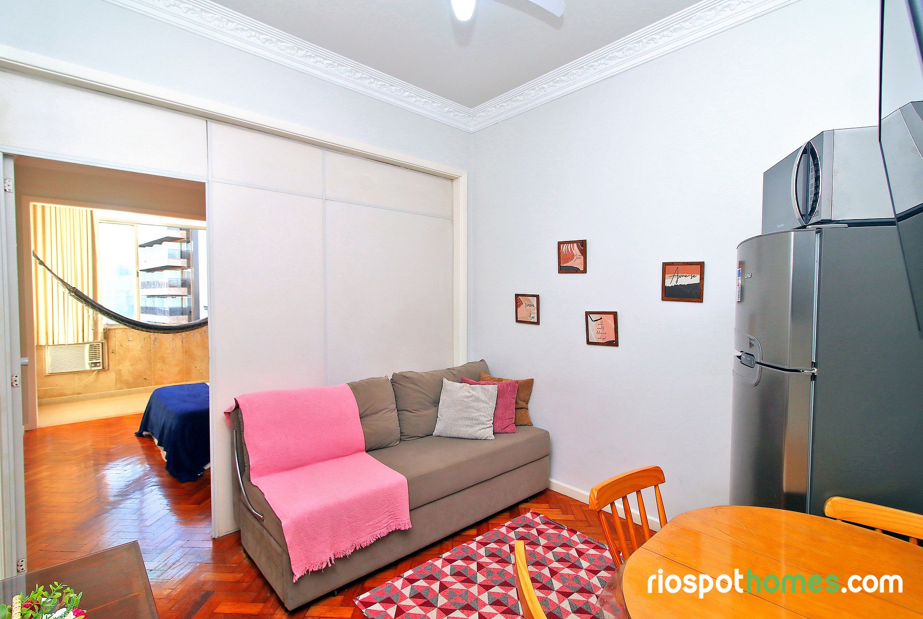 Comfortable apartment with side beach view. Seasonal rental for up to 4 people, is divided into, bedroom, kitchen and bathroom. The room has a comfortable double bed, air conditioning and wardrobes. Living room with 1 comfortable double sofa bed, SmarTV, dining table with 4 chairs. Quiet, the apartment also has indirect lighting, aiming for greater comfort. The kitchen is compact, equipped with modern appliances, granite countertops and cabinets. Full bathroom and clean decor. The property is located in a residential building with security and concierge 24 hours and monitoring system. Just 2 minutes walking to the beach. Services such as wifi internet are included in the price of the apartment. The surroundings of the building offer complete infrastructure for a tourist, with shops, markets, ATMs and public transportation. Only 5 minutes from Siqueira Campos subway station.