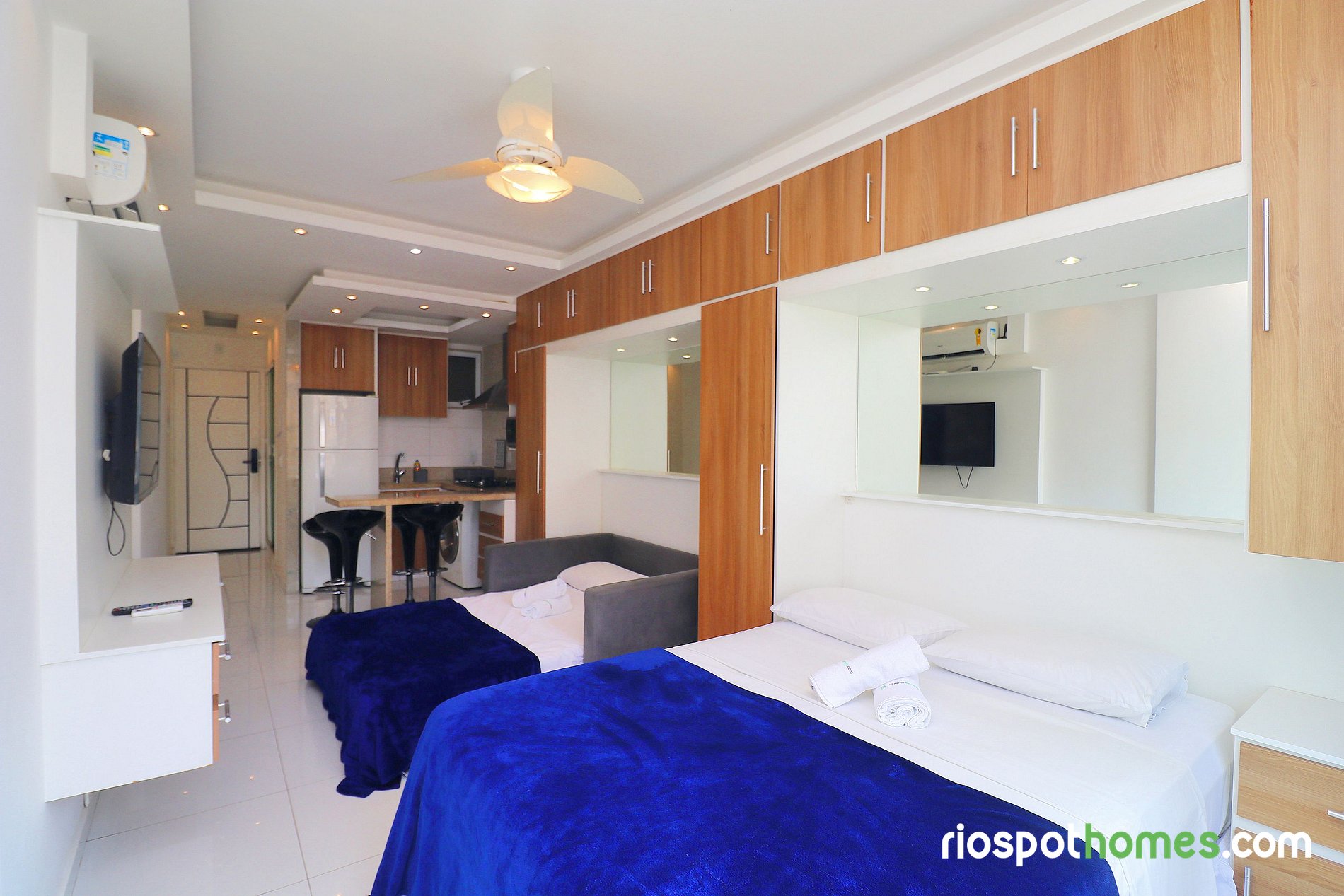 The Studio is located on the 9th. floor of a secure building with 24 hour concierge and monitoring system. The distance to Copacabana beach is only 80 meters. The location offers total infrastructure for a tourist, having around supermarkets, ATMs, restaurants and public transportation. This apartment for the season is the perfect place to stay, making your stay in the wonderful city of Rio de Janeiro unforgettable. Ideal for singles, a couple or small groups / families.