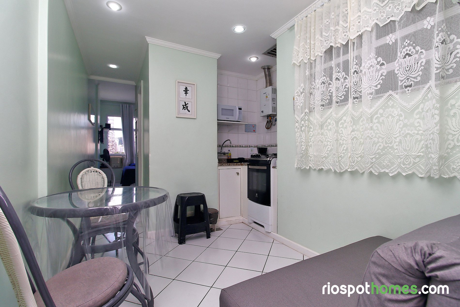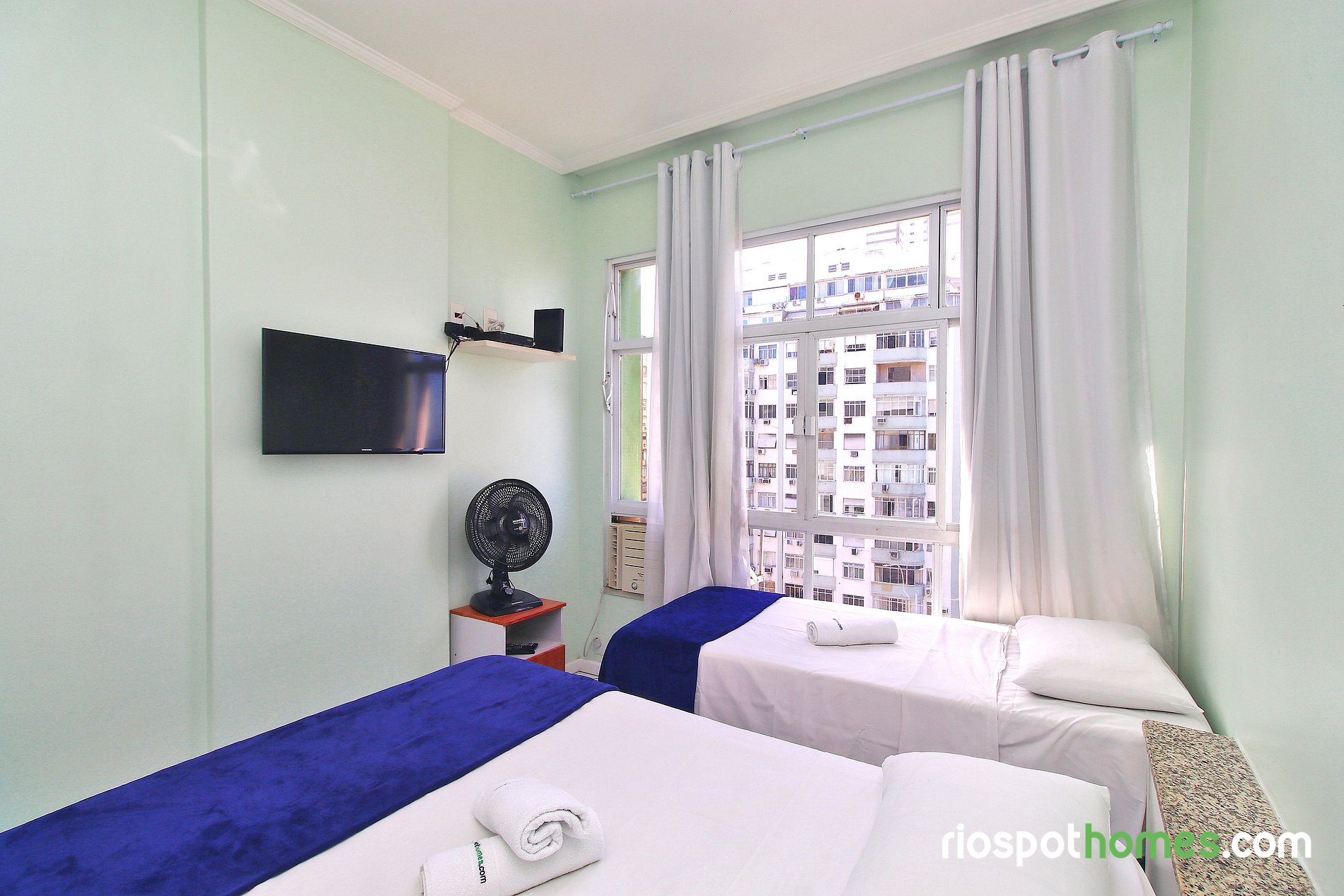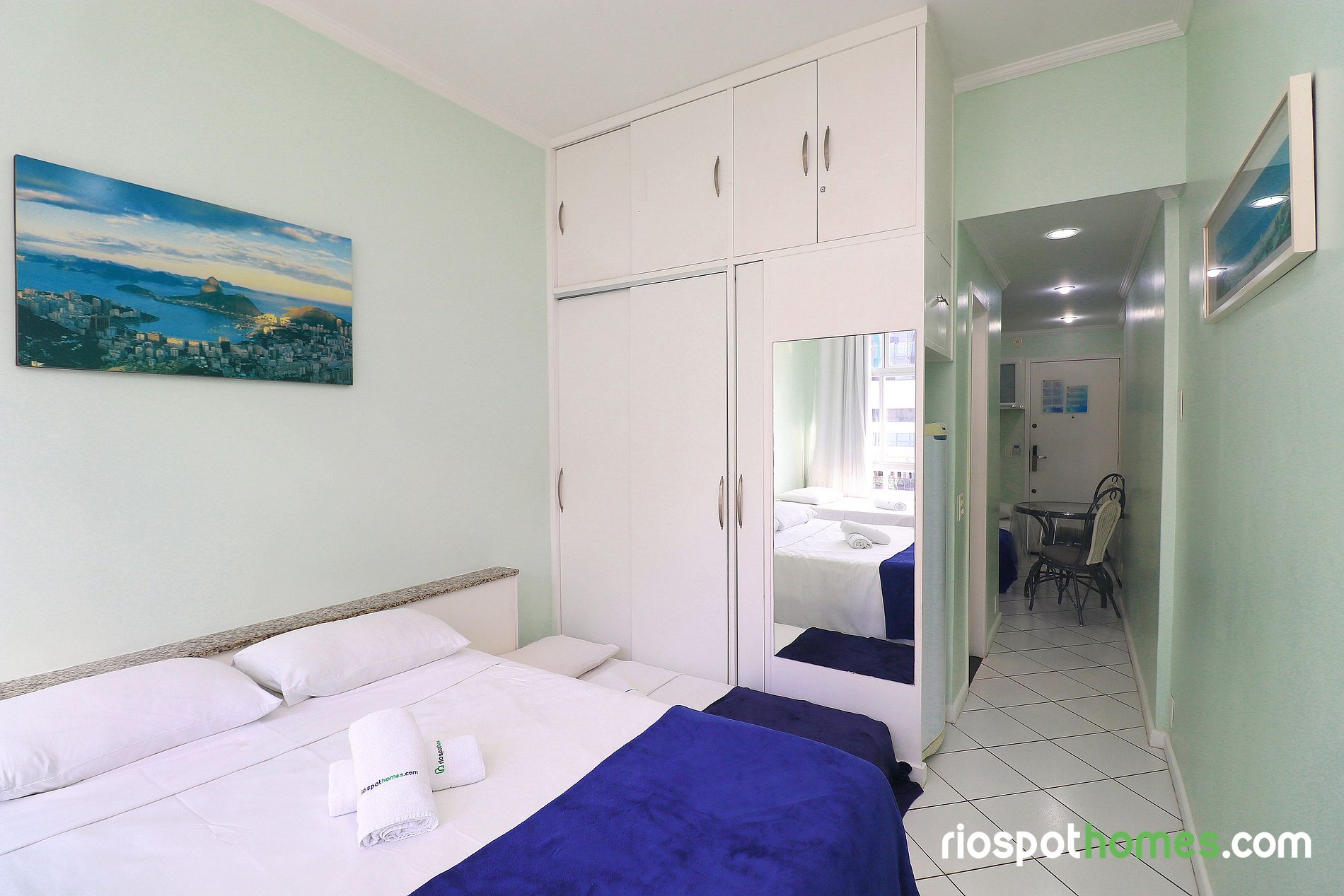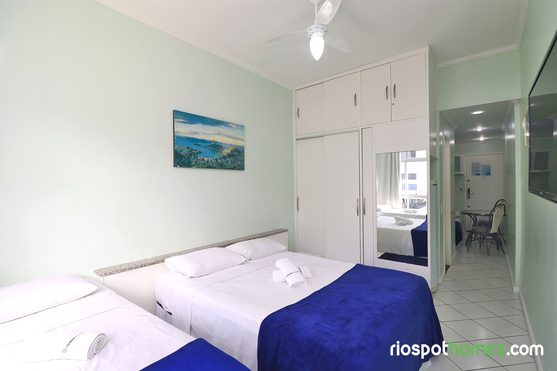 Estudio moderno con hermosas vistas a la playa de Copacabana para 5 personas en Copacabana. Este increíble apartamento esta situado en la cuadra de la playa de Copacabana con una vista privilegiada a la playa más famosa del mundo. La cama de matrimonio, una cama individual, 1 sofa-cama de matrimonio, aire acondicionado, 1 ventilador de techo, 1 baño con caja grande, cocina completa con todos los eletros y utensilios, TV por cable e Internet Wi-fi. Cerca de bares, restaurantes, bancos, farmacias 24hrs y transporte publico, este es un lugar ideal para familias pequeñas, parejas o grupo de amigos. ¡Reserva ya su alojamiento en Rio!