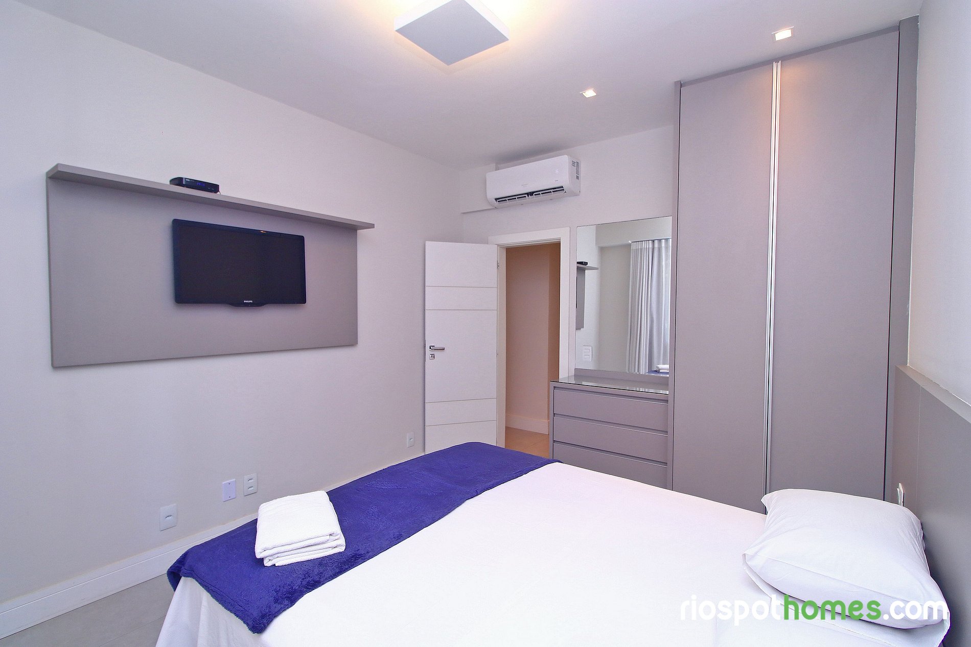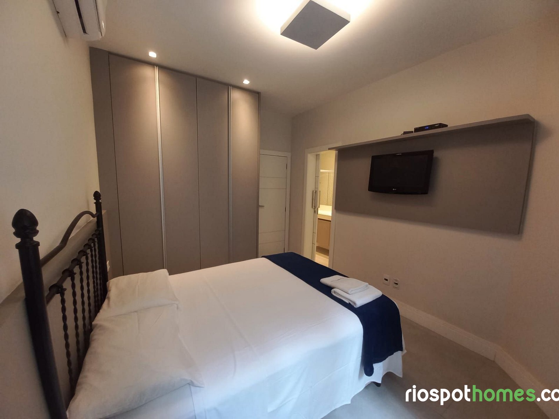 Dormitorio 2 con cama Queen size, Smart TV, armario y aire acondicionado split.