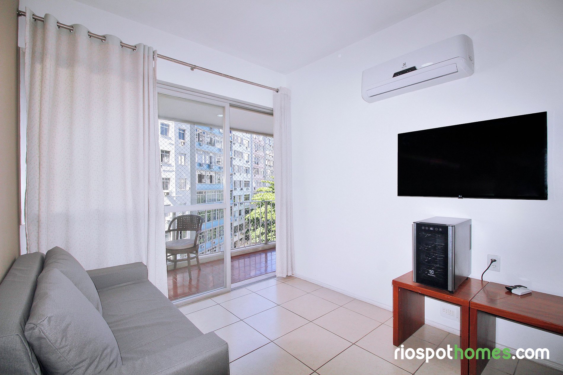 El aire acondicionado split tanto en el dormitorio como en el salón garantiza una estancia fresca y agradable, incluso en los días más calurosos de Río.