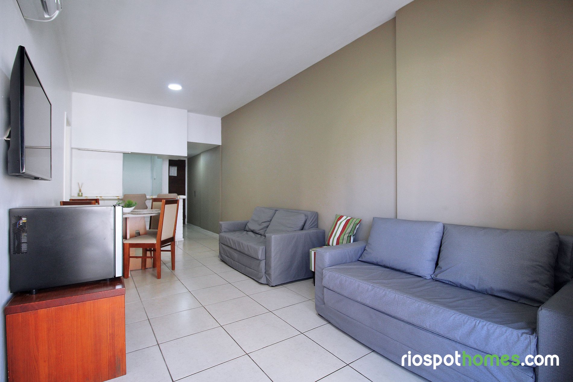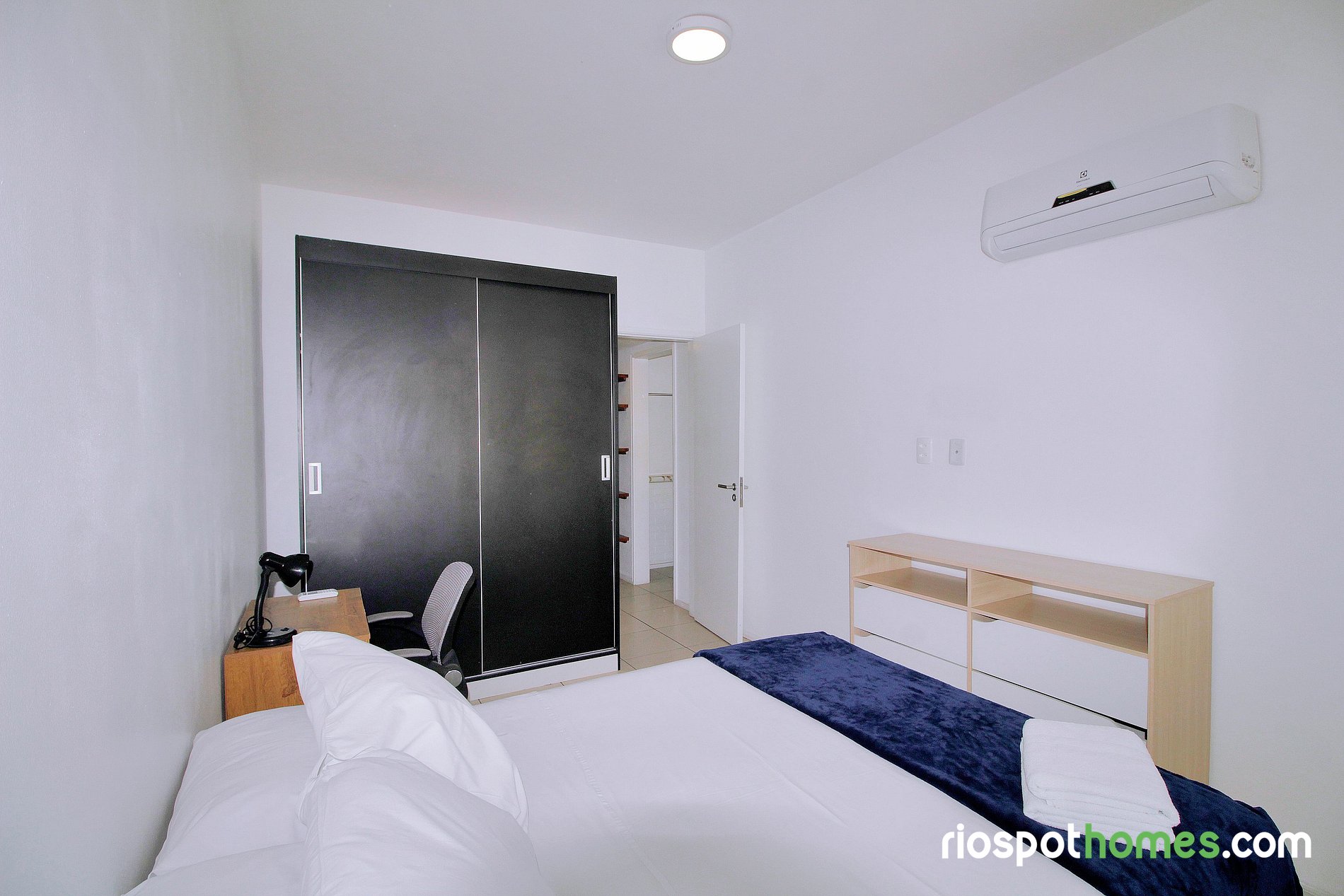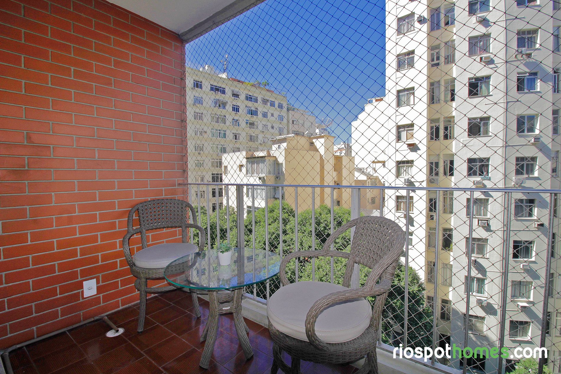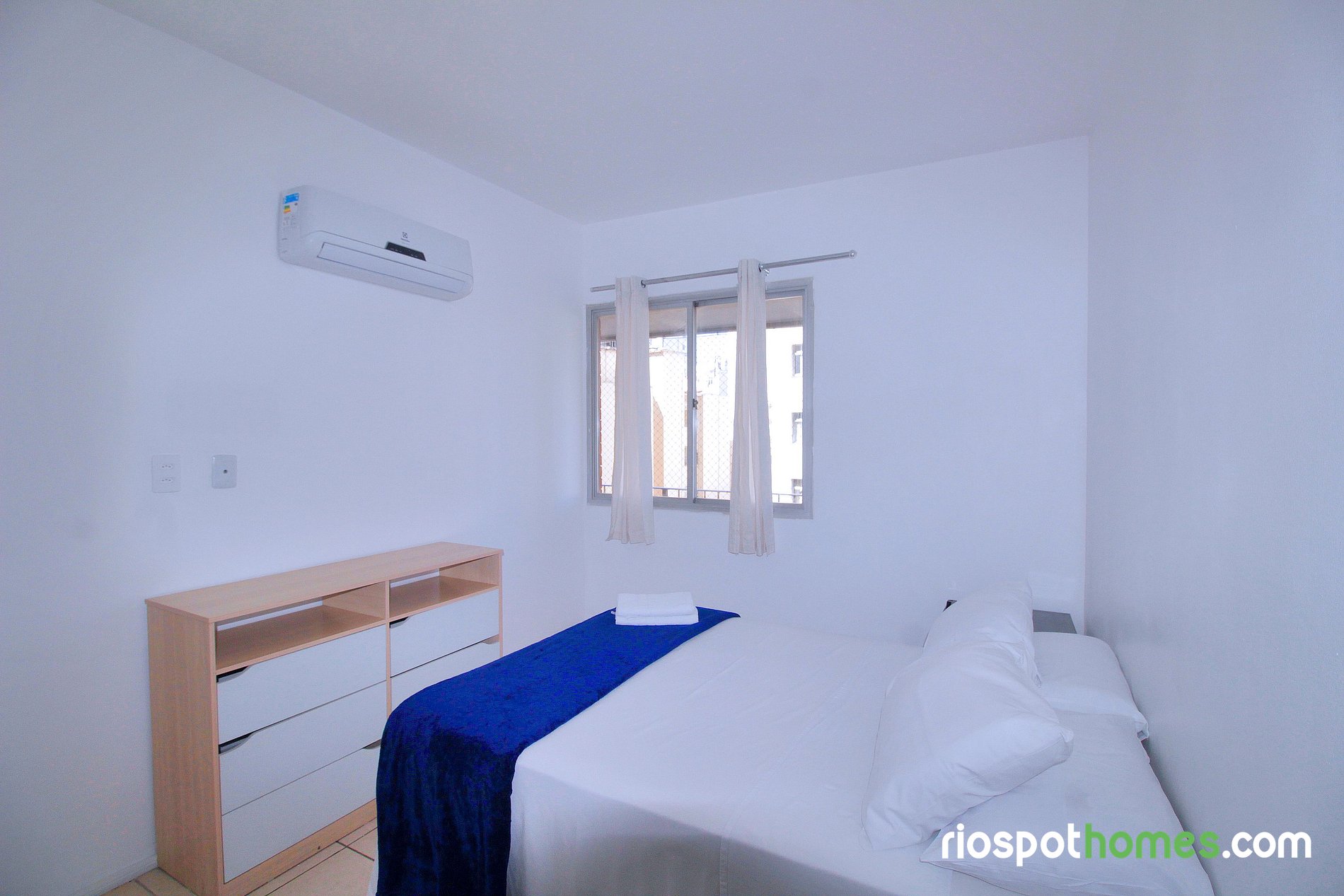 El aire acondicionado split tanto en el dormitorio como en el salón garantiza una estancia fresca y agradable, incluso en los días más calurosos de Río.