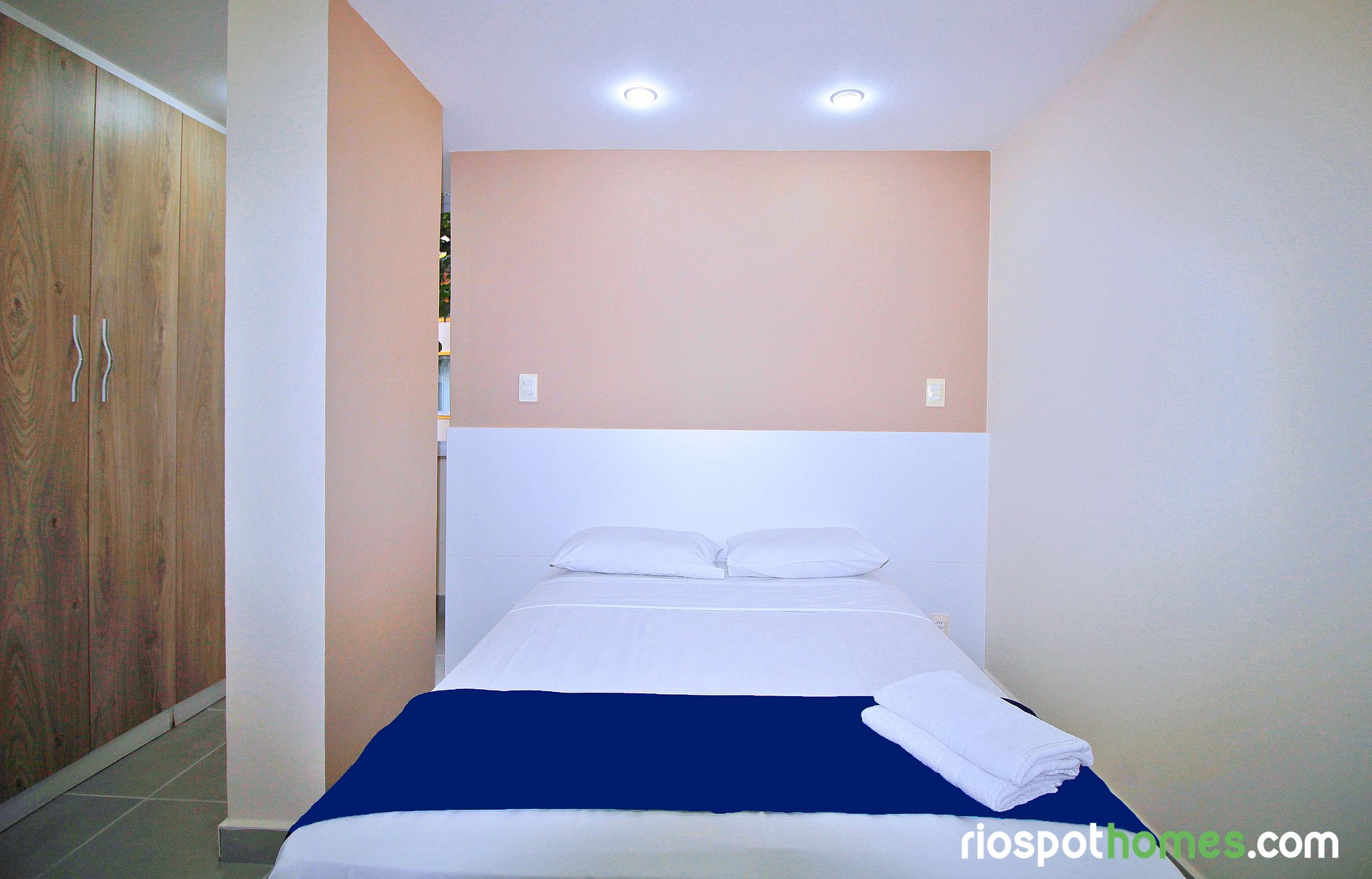 2 recámaras con camas matrimoniales, aire acondicionado split y clósets — 1 suite con baño privado