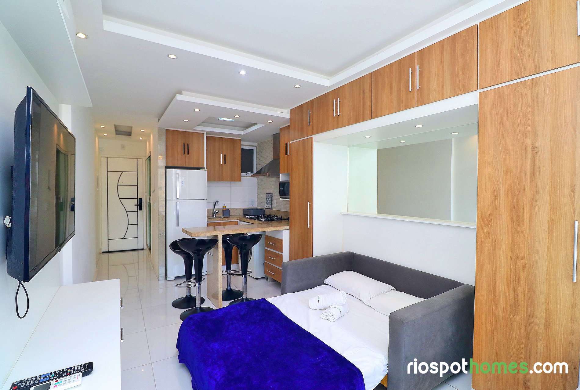Estudio de lujo con maravillosas vistas al mar. Hasta 3 personas. Sólo unos metros hasta la famosa playa de Copacabana - Río de Janeiro.