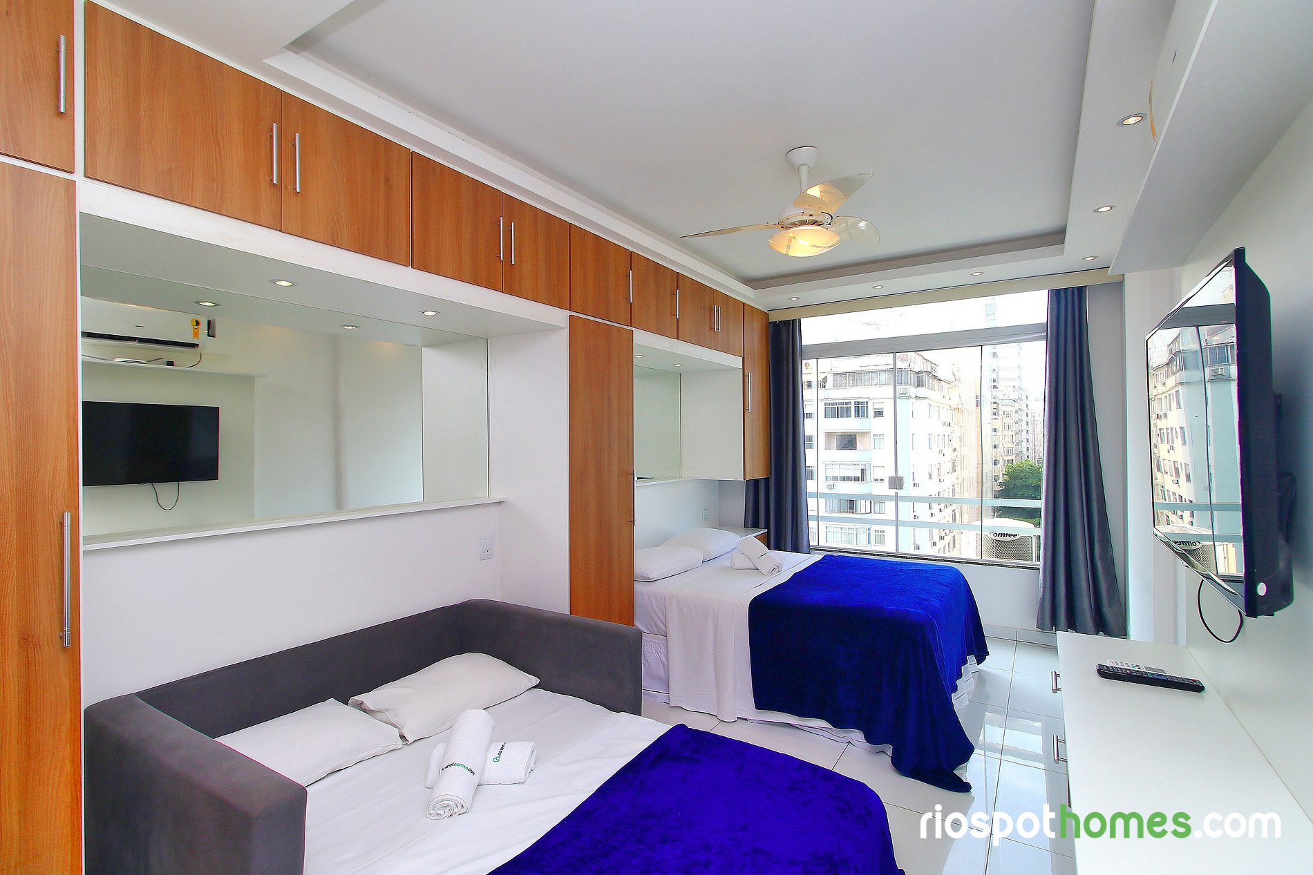 El Studio está ubicado en el 9° piso de un edificio seguro con portería 24h y sistema de monitoreo. La distancia hasta la playa de Copacabana es de apenas 80 metros. La ubicación ofrece total infraestructura para un turista, teniendo alrededor supermercados, cajeros automáticos, restaurantes y transporte público. Este apartamento para la temporada es el lugar perfecto para alojarse, haciendo su estancia en la maravillosa ciudad de Río de Janeiro inolvidable. Ideal para solteros, una pareja o pequeños grupos / familias.