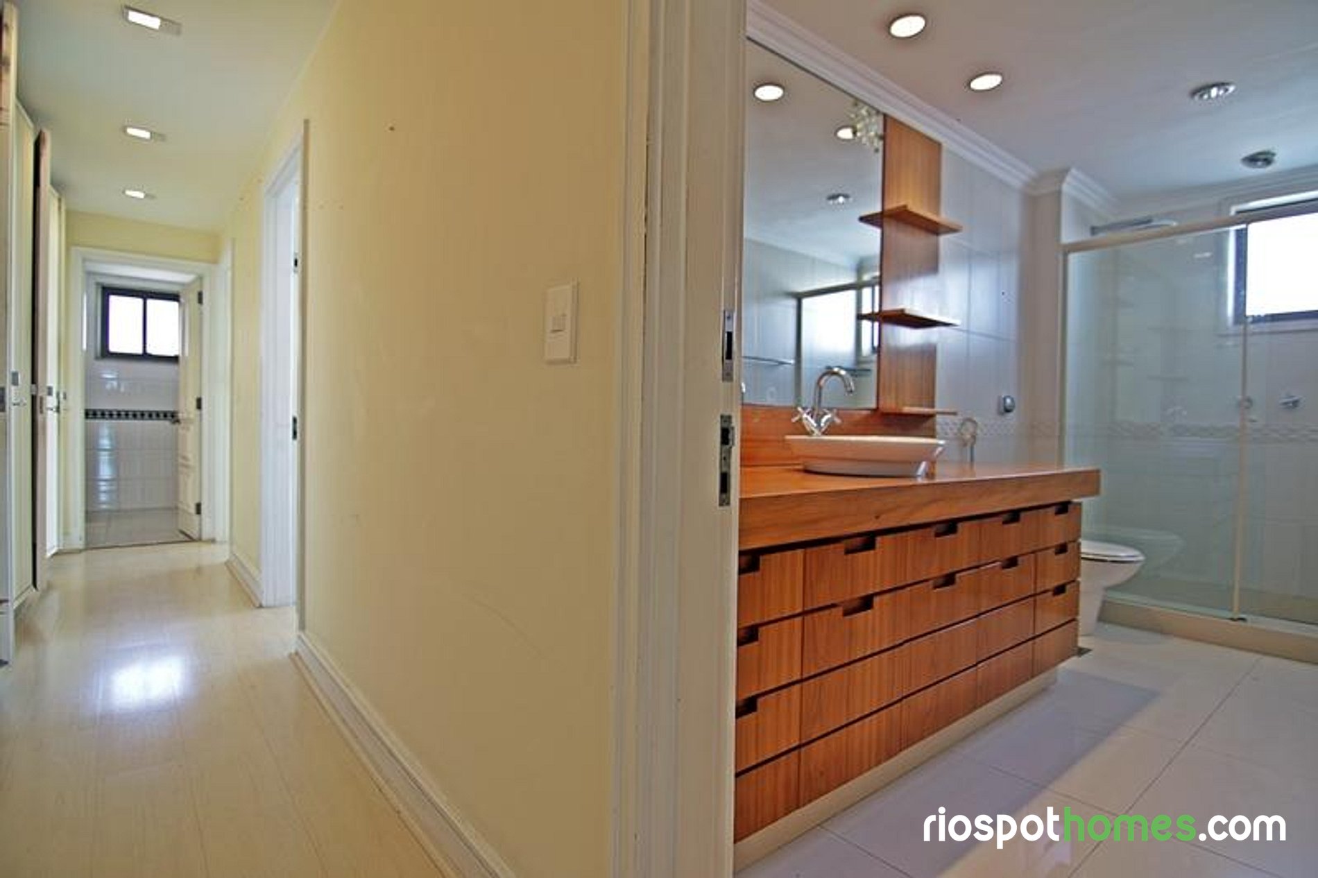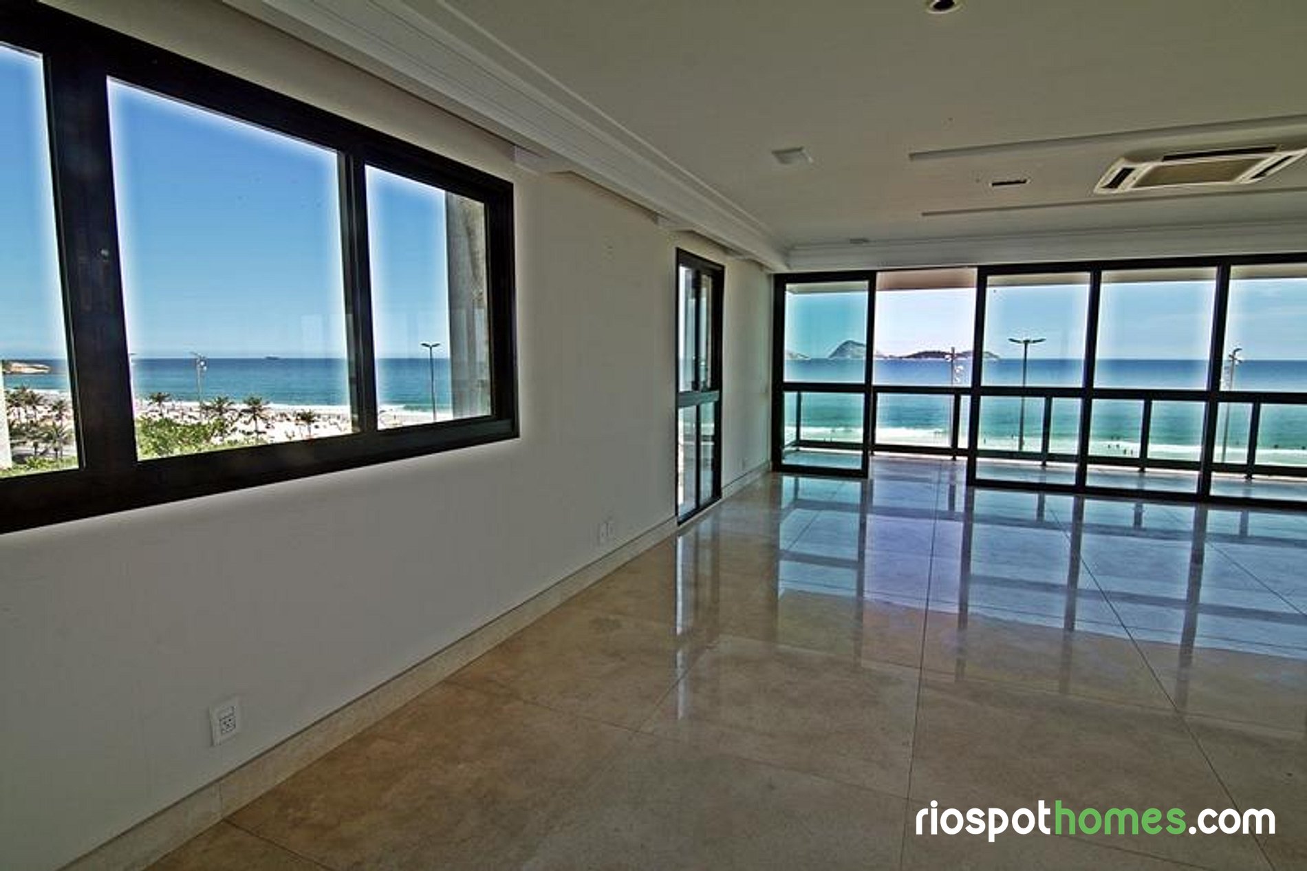 Apartamento frontal mar com 4 quartos, 3 banheiros sociais sendo dois com hidro, hall de entrada com lavabo e amplo living em 3 ambientes com varanda e uma vista deslumbrante para a praia de Ipanema; copa/cozinha, área de serviço e dependência completa, além de 3 vagas na garagem para total conforto.