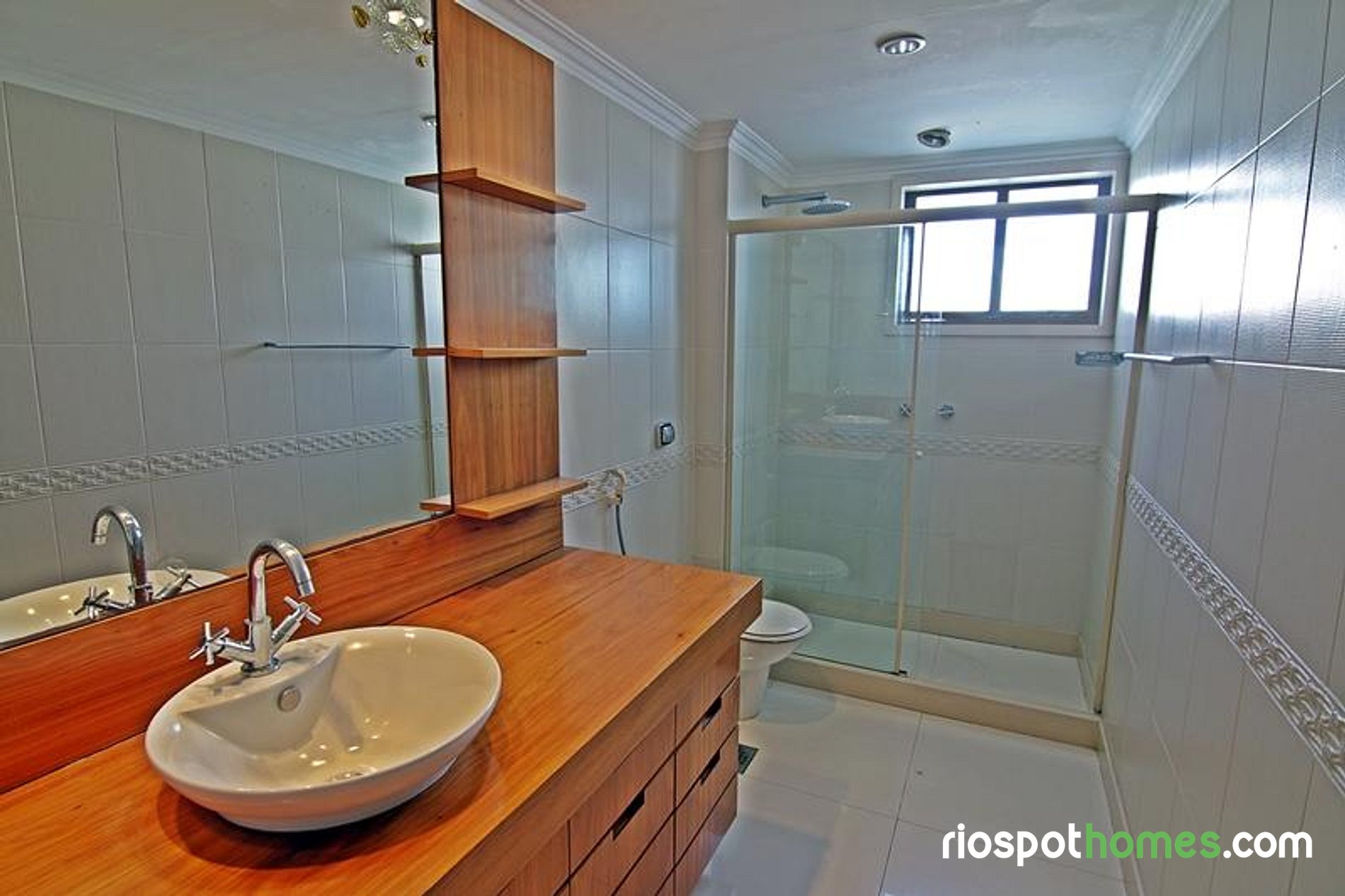 Armários de madeira feitos sob medidas na sala, quartos, corredor, banheiros e cozinha, piso em porcelanato, pias com cubas sobrepostas em mármore, metais de primeira linha assim como todo o acabamento do imóvel.