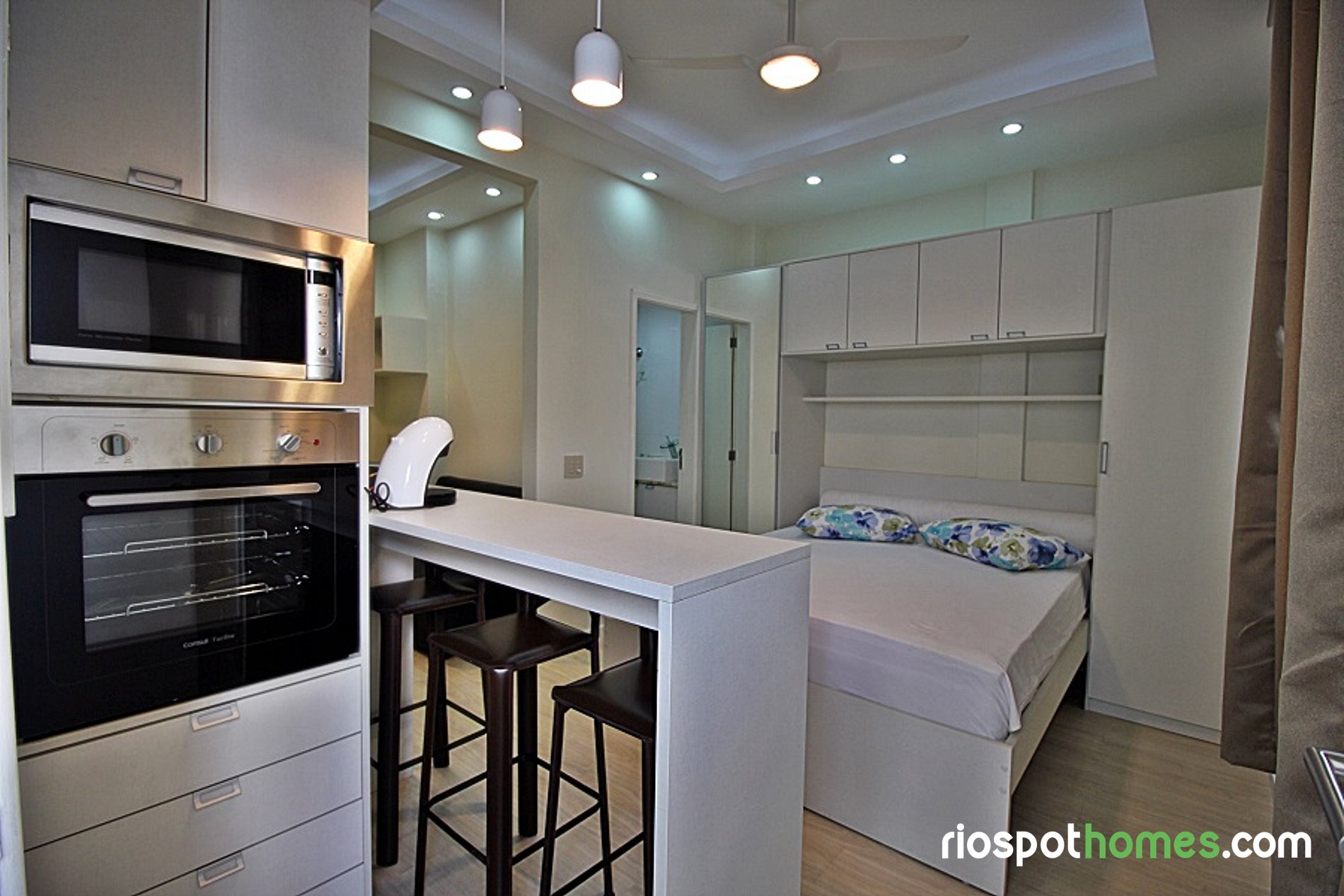 Ipanema Apartamento Temporada, lindo e reformado para até 4 pessoas. A poucos passos até a praia maravilhosa de Ipanema. Imóvel reformado com 32m², dividido em quarto, banheiro e uma cozinha moderna. O apartamento de temporada em Ipanema possui teto rebaixado e iluminação indireta. Imóvel equipado com uma cama de casal Queen size, sofá cama de casal, TV LCD, lavadora e secadora de roupa e um guarda-roupa embutido. O apartamento possui ar condicionado split, ventilador de teto e Internet sem fio gratuito. O apartamento esta localizado no 4 º andar de um prédio seguro com portaria 24h no coração de Ipanema. Apenas 80 metros de distância até a famosa praia de Ipanema. O apartamento é ideal para um casal e um solteiro ou pequenas famílias para sua hospedagem na linda cidade de Rio de Janeiro.