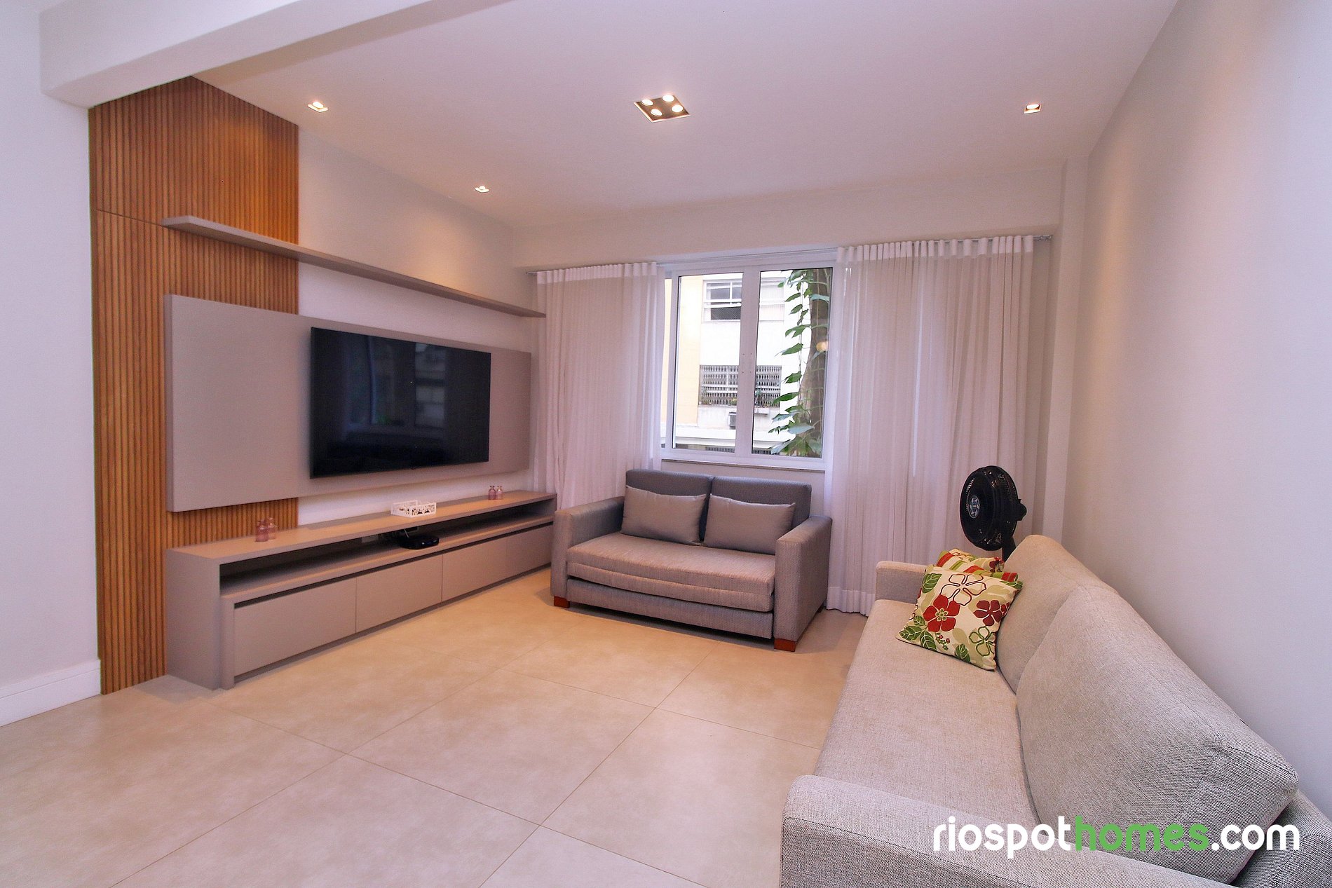 Quarto 2 com cama Queen size, Smart TV, guarda-roupa e ar condicionado split.