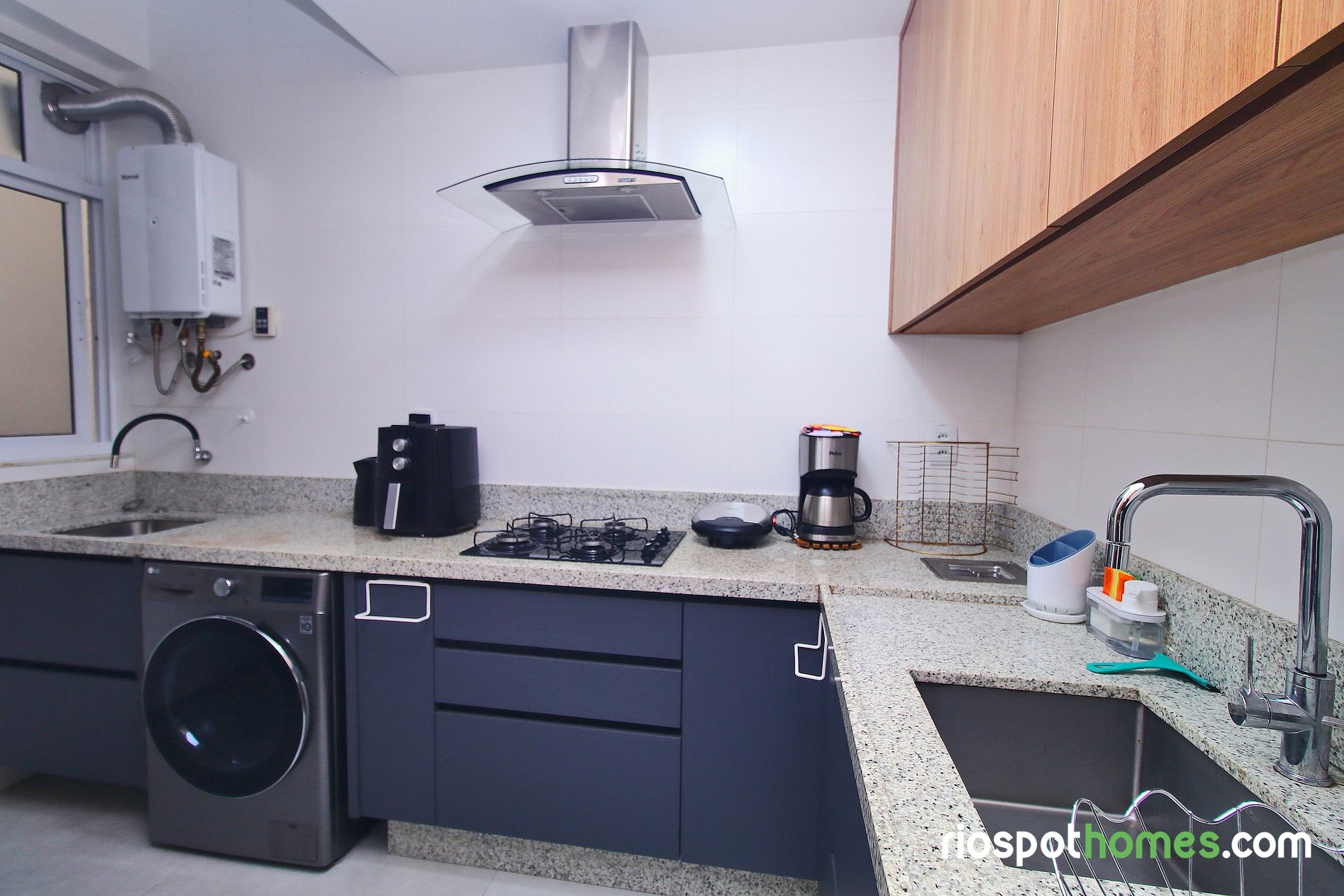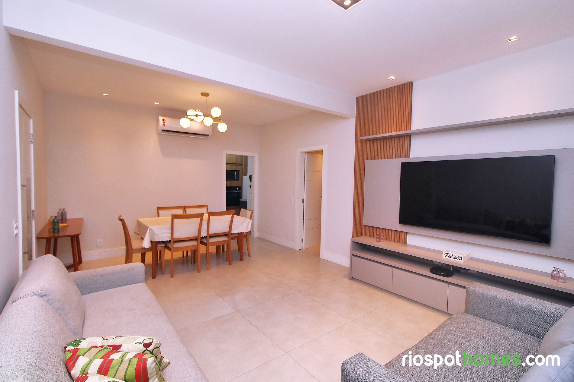 Imóvel de 3 quartos com 100m2 dividido em sala de estar e jantar, cozinha completa com maquina de lavar e secar, 3 quartos com ar condicionado, 2 banheiros completos e area de serviço. Na sala voce encontra um sofa de 3 lugares, um sofá-cama-cama de casal confortável, Smart TV, ar condicionado split e mesa de jantar com 6 cadeiras. Cozinha equipada com geladeira frost free, fogão cooktop 4 bocas, forno, microondas e utensilios básicos para cozinhar. Area de serviço com maquina de lavar e secar, e varal para estender roupas.