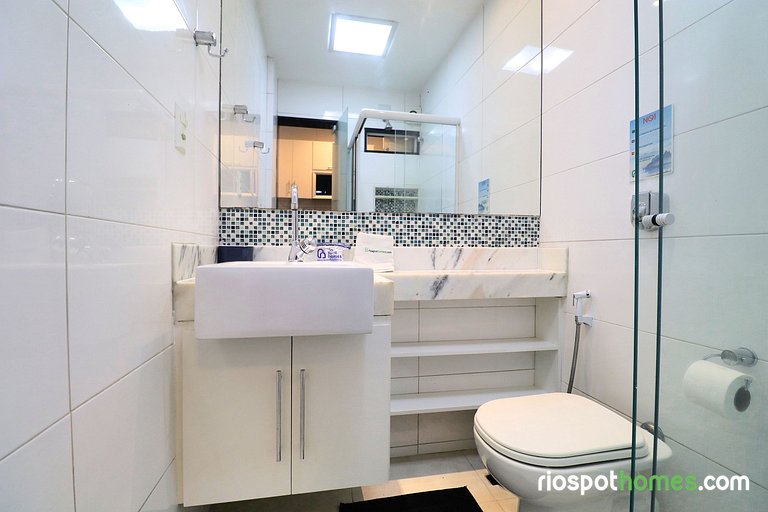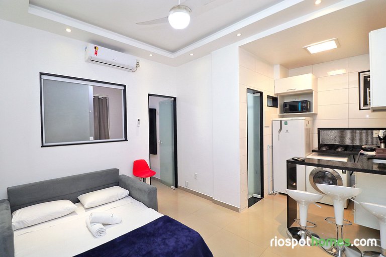 O Rio Spot U051 na quadra da praia é uma excelente acomodação, localizada no bairro de Copacabana, que lhe oferece funcionalidade e tudo que precisa para ter uma ótima estadia na cidade do Rio. Além de ser bem equipada, proporcionando internet de alta velocidade gratis, como também proteção, por ter portaria 24 horas com segurança. Nos arredores você encontrará restaurantes, bares, lanchonetes, farmácias e mercados. A acomodação encontra-se a 50m da praia de Copacabana, próxima ao posto 2, então aproveite para passear no famoso calçadão, andar de bike, pegar uma onda, jogar futebol na areia, ou até mesmo curtir um show ao vivo em um dos quiosques que estão disponíveis na praia mais querida pelas turistas.
