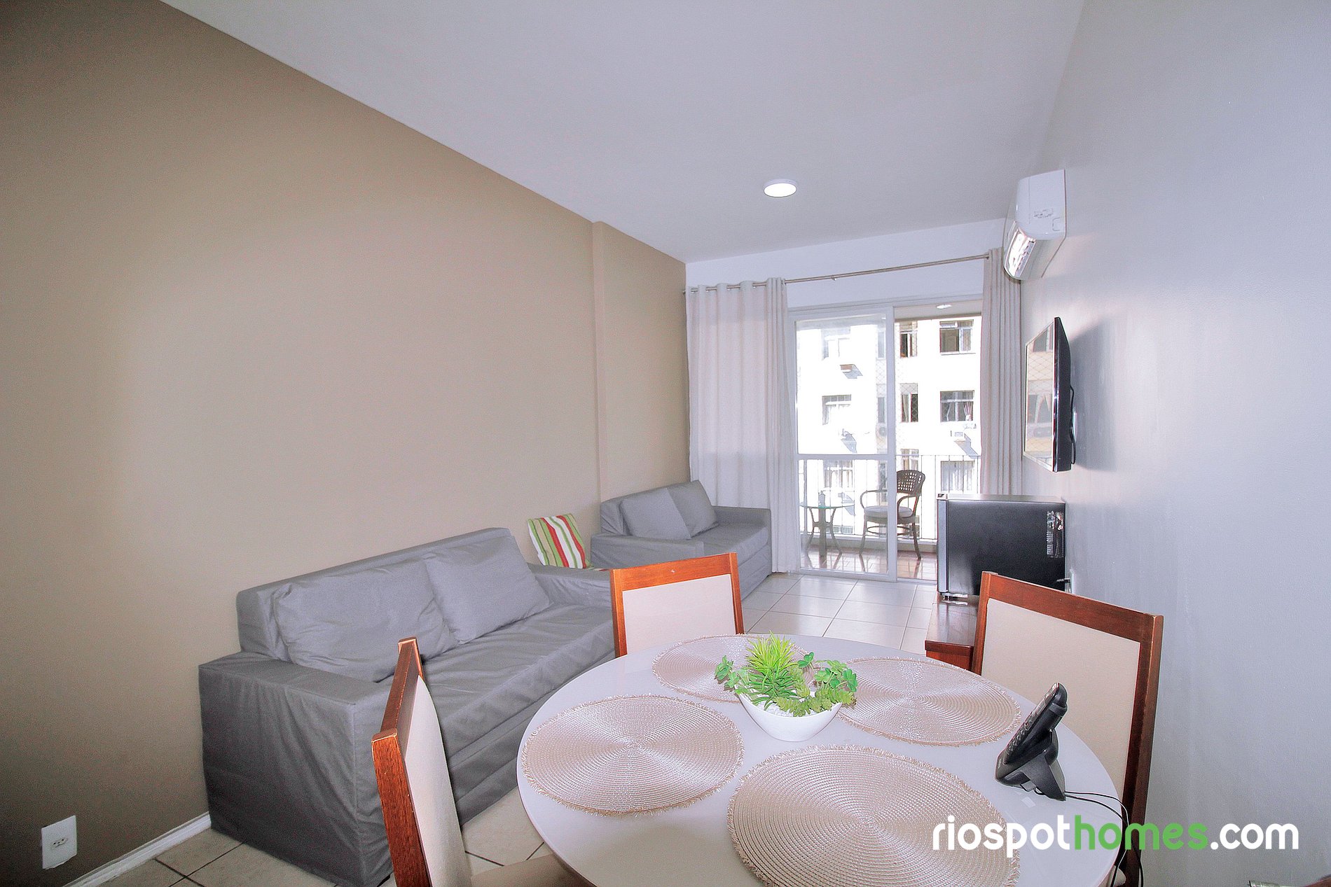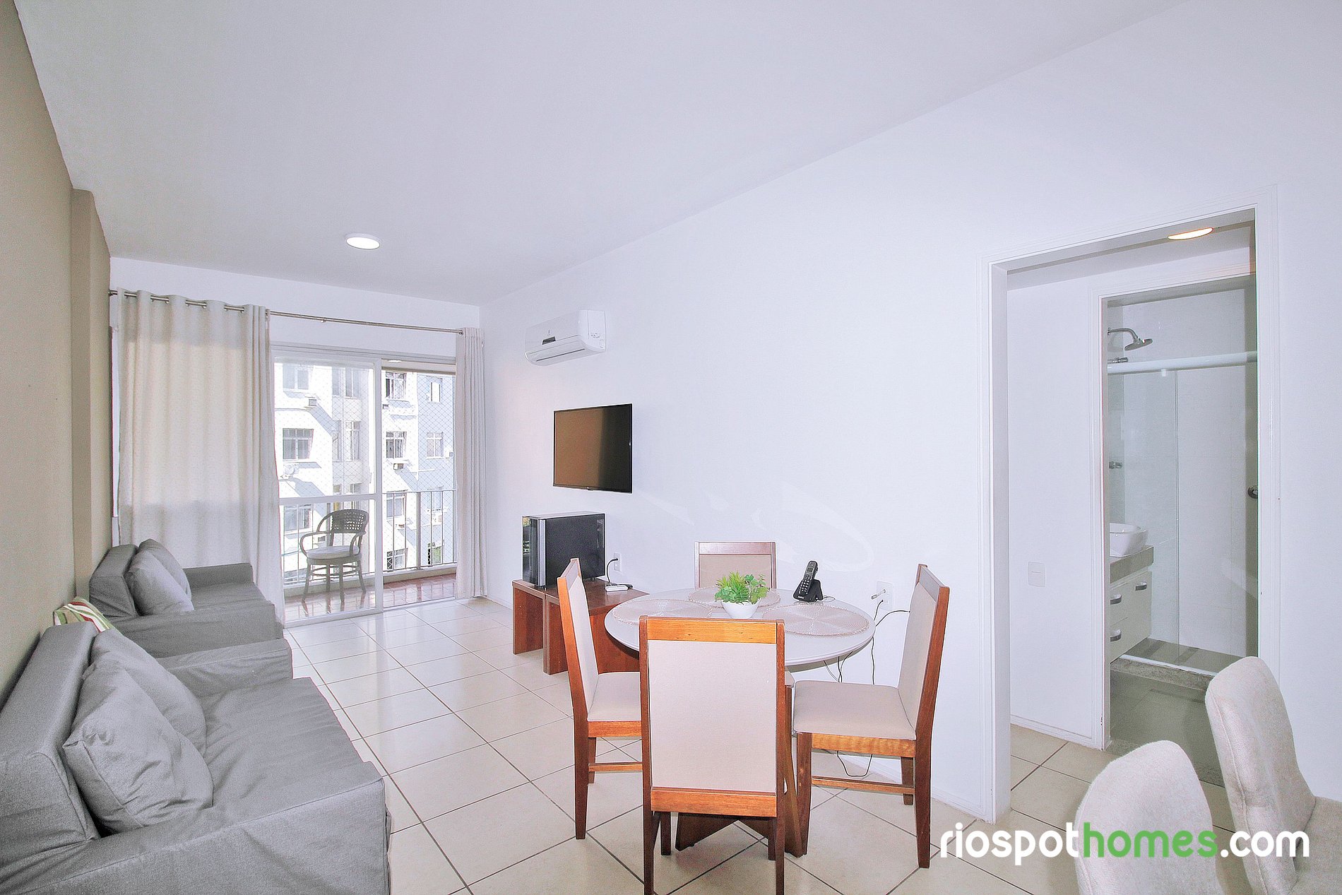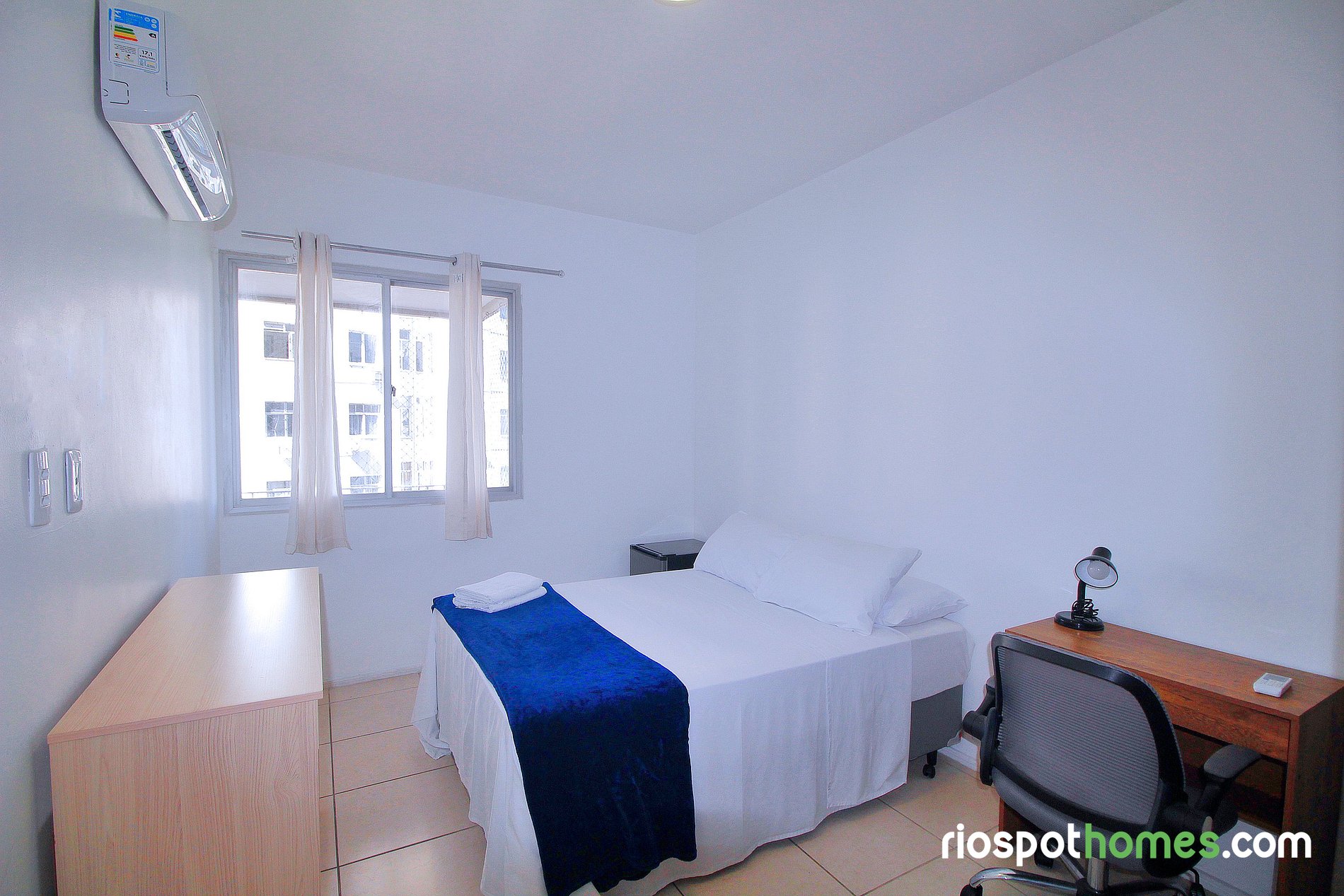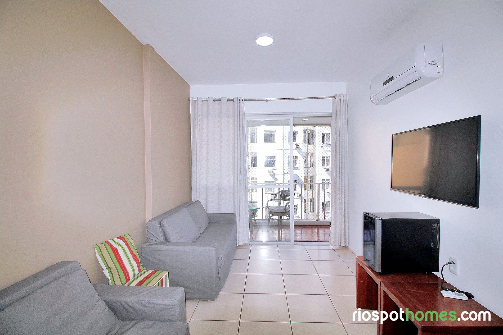 Ar-condicionado split tanto no quarto quanto na sala garantem uma estadia fresca e agradável, mesmo nos dias mais quentes do Rio.