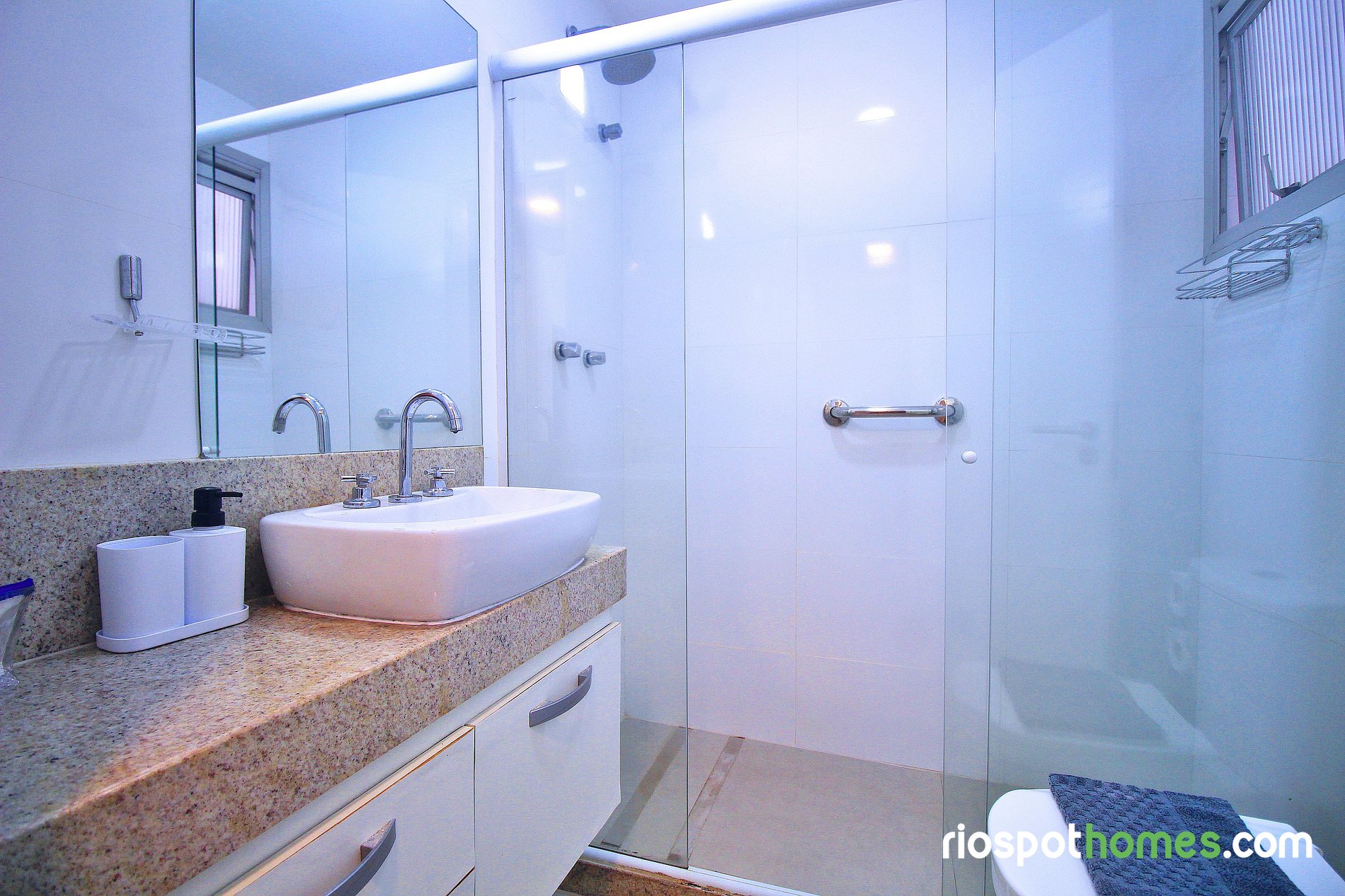 Banheiro limpo e funcional, com chuveiro quente e todas as comodidades que você precisa.