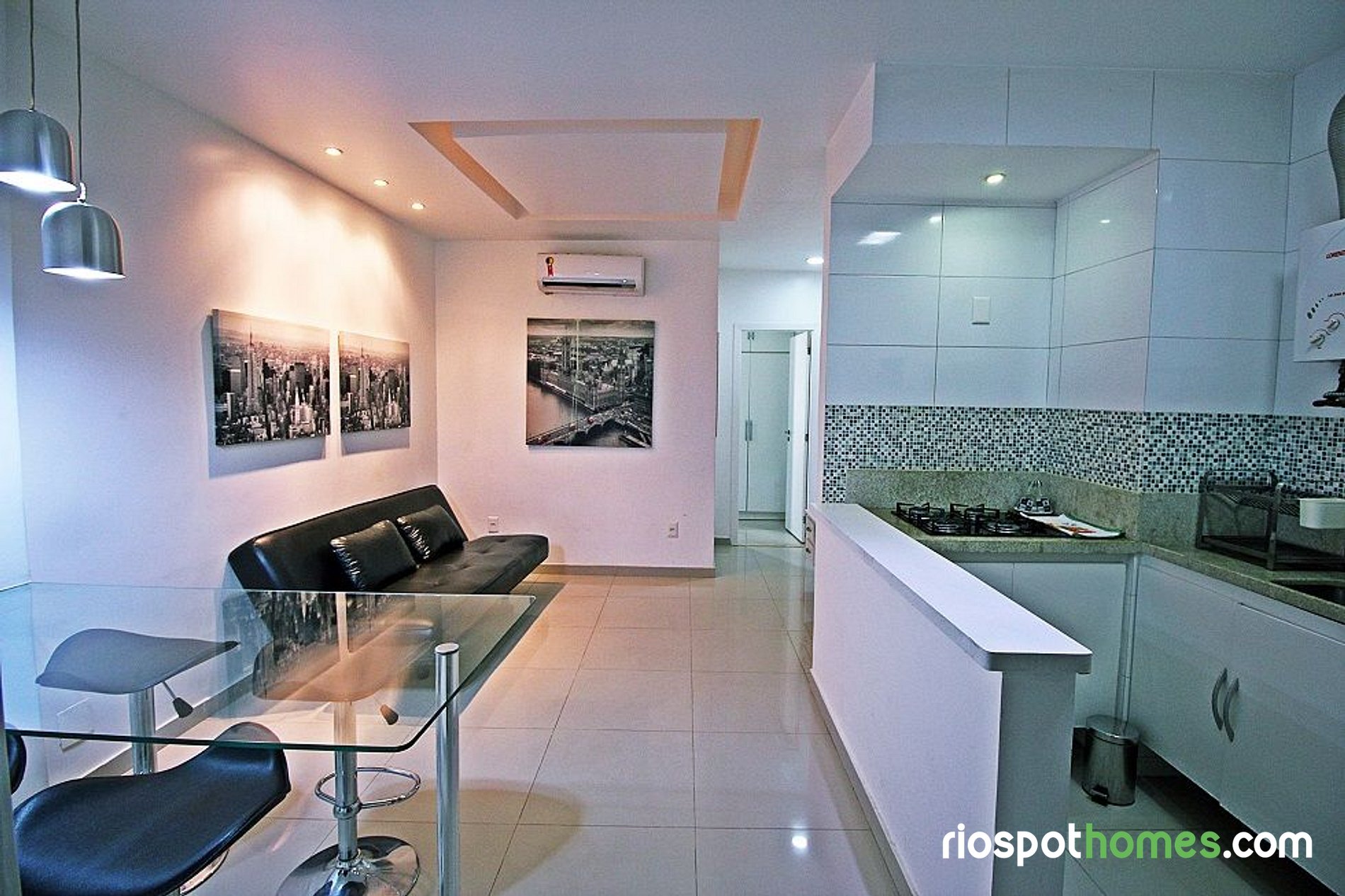 Lindo e moderno apartamento praia de Copacabana. Trata-se de um ótimo apartamento para Aluguel de temporada no Rio de Janeiro com 60m², para até 8 pessoas, divididos em sala, cozinha, dois quartos e banheiro.